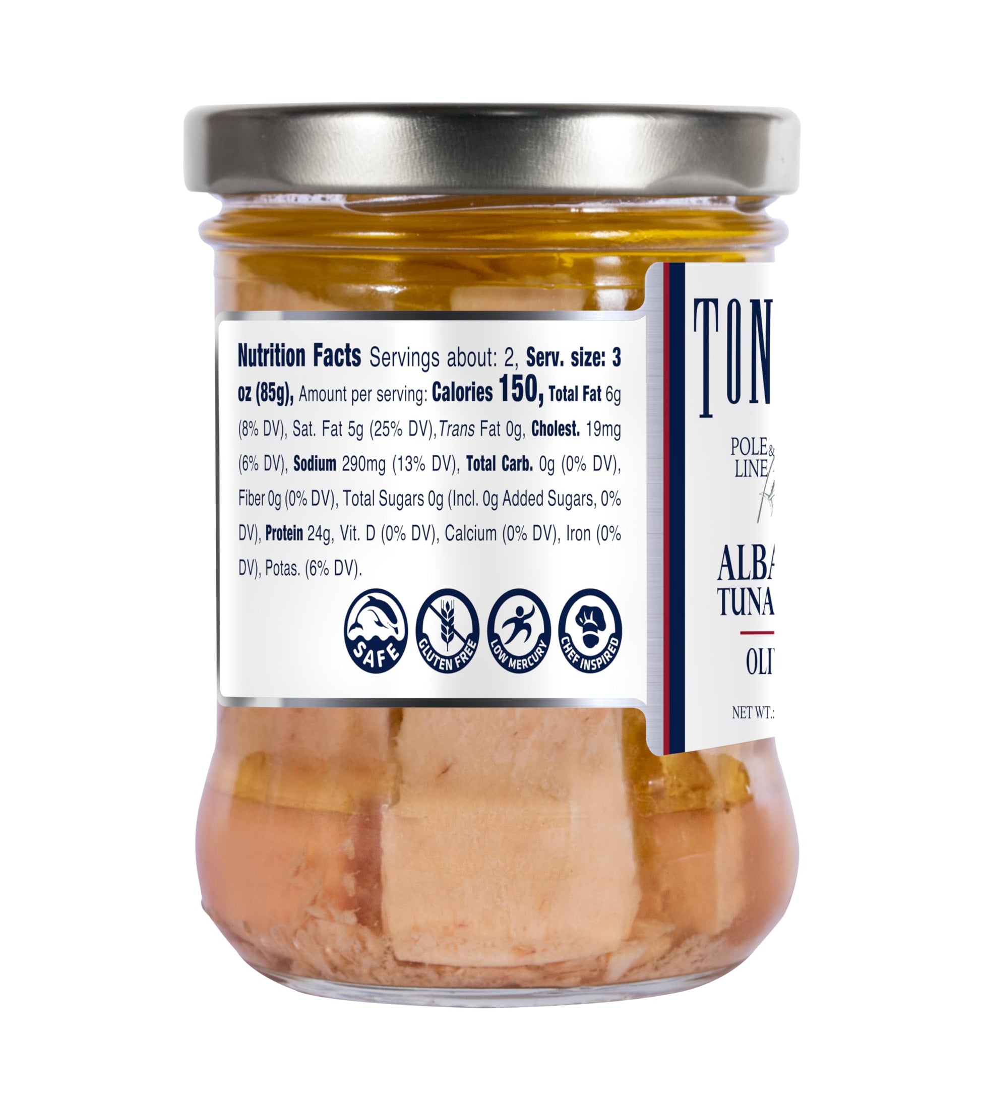 - Q: What are the primary benefits of Tonnino Albacore Tuna in Olive Oil? A: Tonnino Albacore Tuna in Olive Oil is rich in Omega-3 fatty acids, making it a healthy choice for those looking to boost their protein intake. It's gluten-free and ready-to-eat, perfect for quick meals or snacks. The premium quality of pole & line caught tuna ensures sustainability and superior taste.