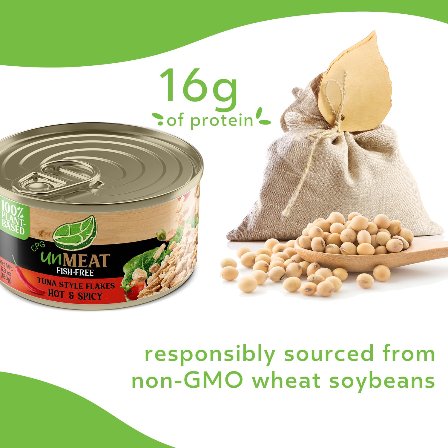 - Q: What ingredients are used in unMEAT Plant Based Tuna Style Flakes? A: unMEAT Plant Based Tuna Style Flakes are crafted from non-GMO, clean plant protein ingredients. They contain no cholesterol, no added preservatives, and are entirely plant-based, making them a healthy alternative to traditional tuna.