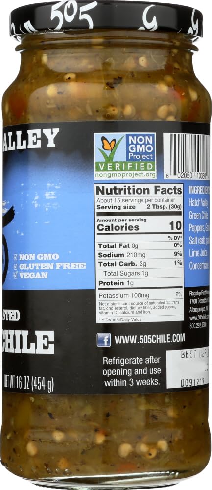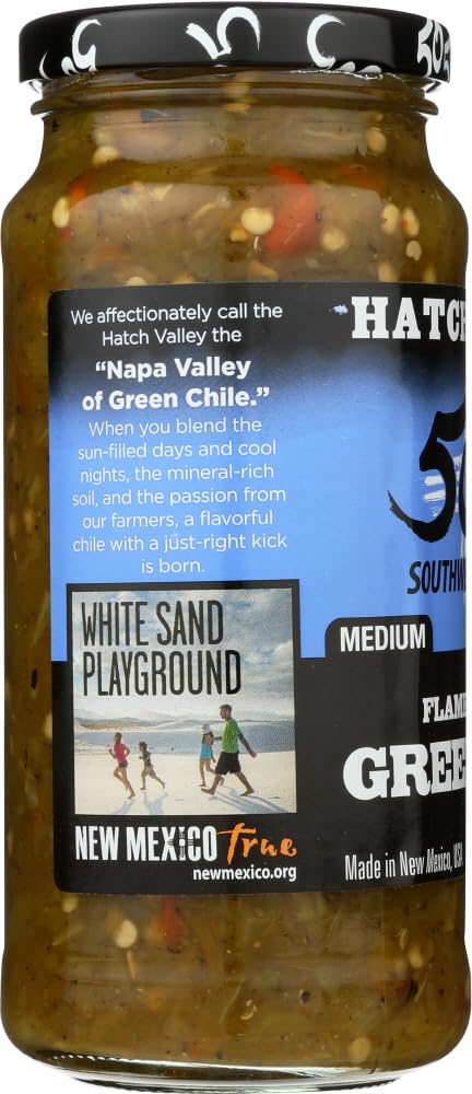 Q: What flavors are available for the 505 Southwestern 16oz Jar?A: The 505 Southwestern 16oz Jar comes in a variety of flavors, including Diced Flame Roasted Green Chile in Medium, allowing you to select your preferred taste to enhance your dishes.