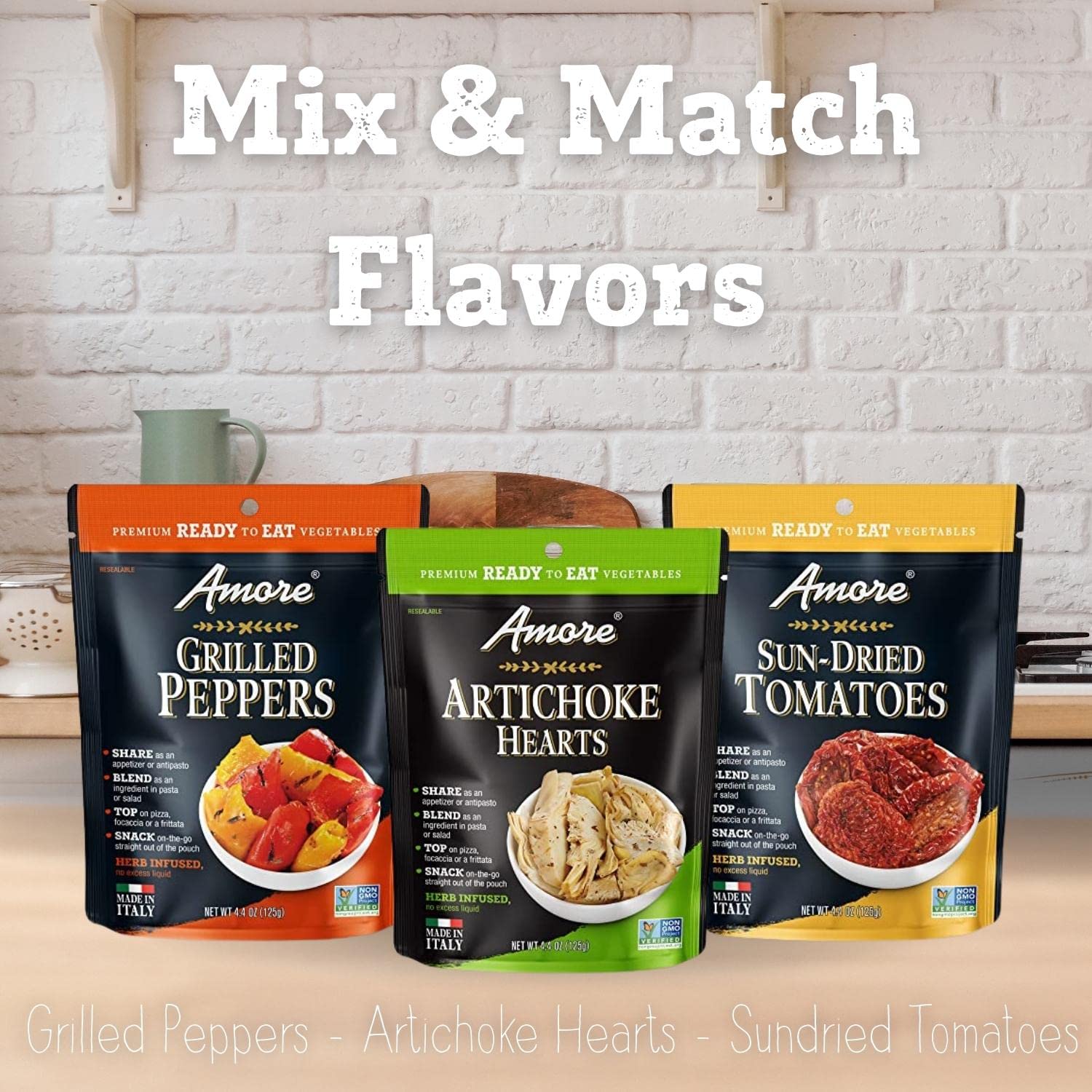 Amore Vegan Sun Dried Tomatoes - Non GMO Certified Ready-to-Eat Herb Infused Vegetables In Resealable Bags 4.4 Ounce (Pack of 10