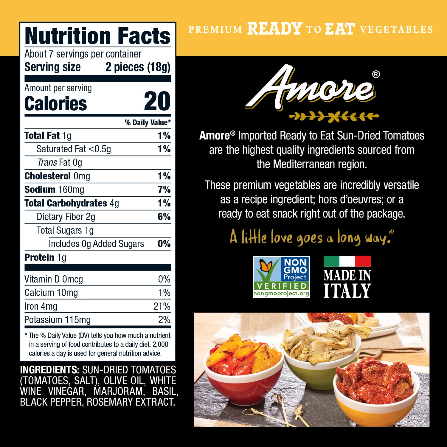 Amore Vegan Sun Dried Tomatoes - Non GMO Certified Ready-to-Eat Herb Infused Vegetables In Resealable Bags 4.4 Ounce (Pack of 10)