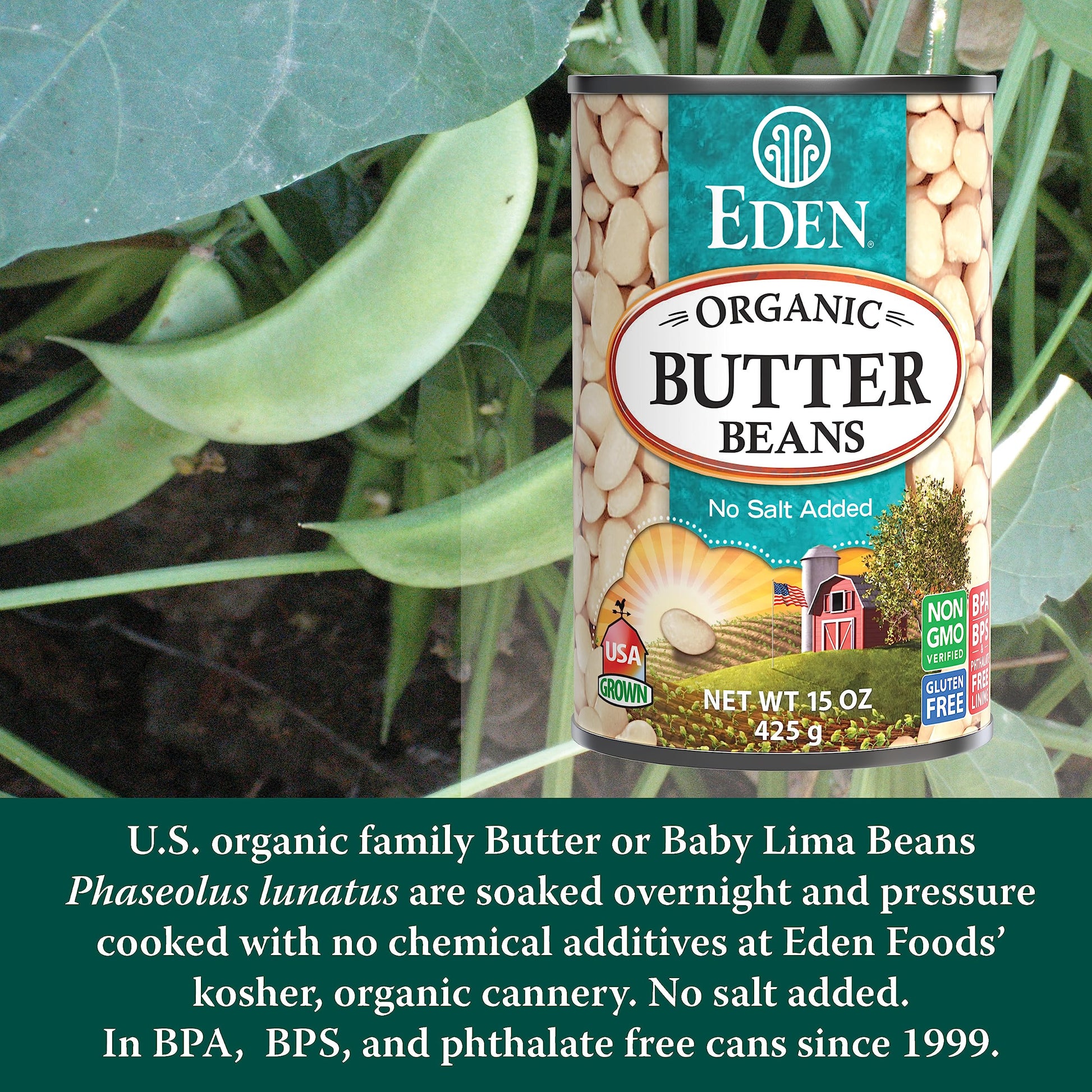 Eden Organic Butter Beans, (Baby Lima Beans), No Salt Added, USA Grown, Non GMO, 15 oz (12-Pack)