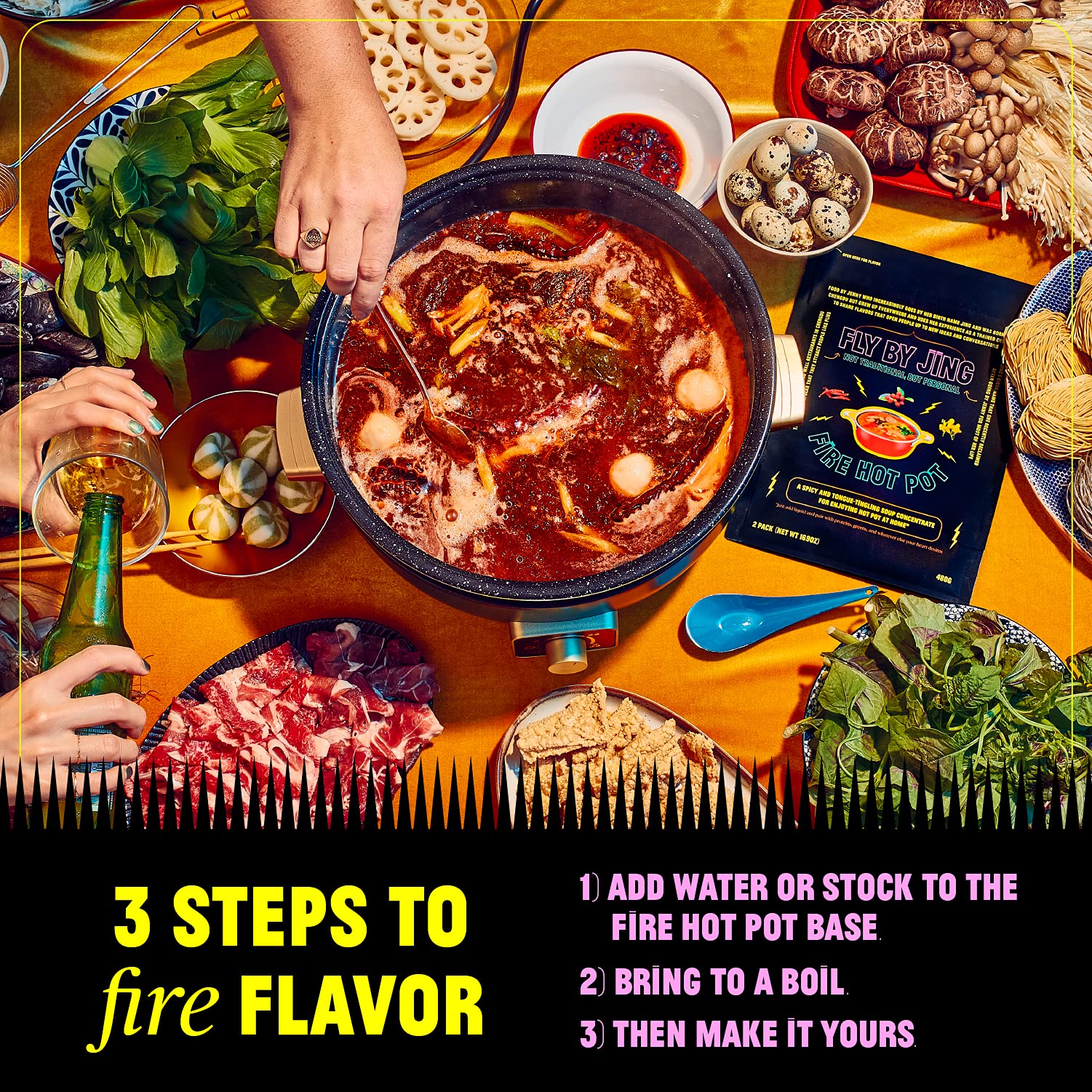 FLYBYJING Fire Hot Pot Soup Base, Spicy Sichuan Hot Pot at Home, Packed with Umami Flavor, No MSG, Vegan and Sugar Free, Perfect and Unique Dinner Party or Family Meal (Pack of 2)