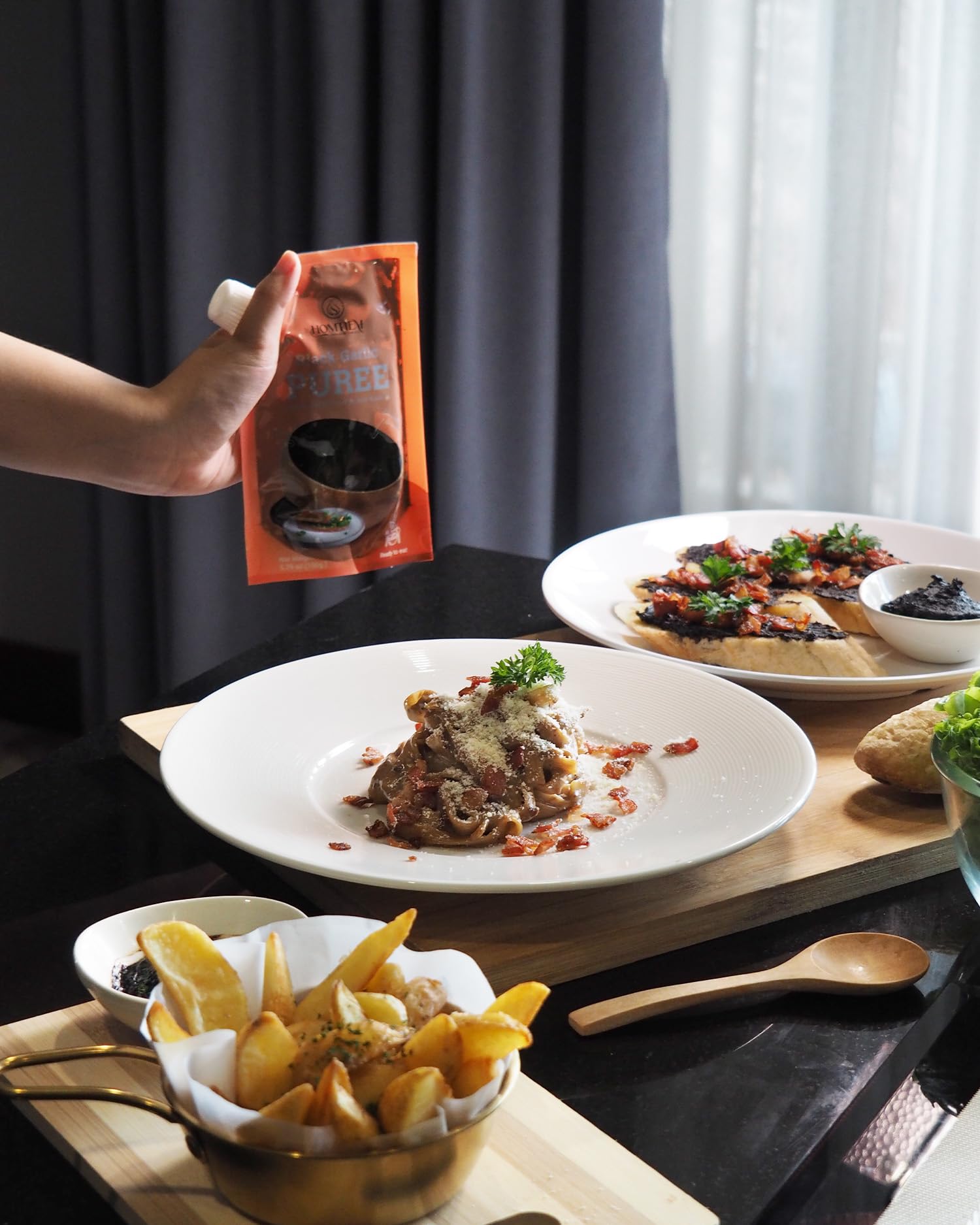 Homtiem Black Garlic Puree 150g. (Made from Solo Black Garlic 100%), Whole Black Garlic Fermented for 90 Days, Non-GMOs, High in