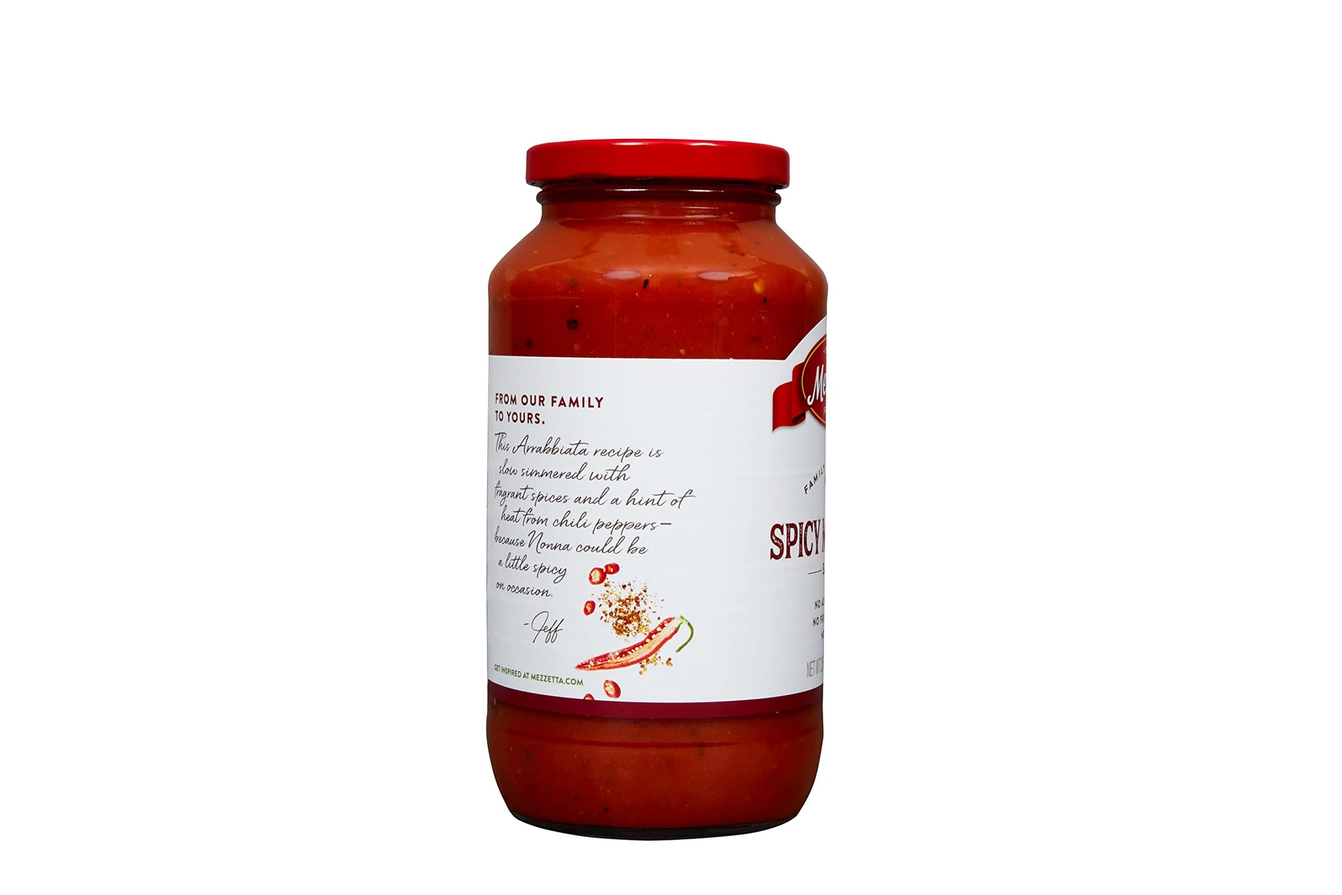 Q: What makes Mezzetta Family Recipes Spicy Marinara Sauce unique?A: Mezzetta Family Recipes Spicy Marinara Sauce is unique due to its Arrabbiata-like flavor profile, combining sweet plum tomatoes, garlic, fresh onions, aromatic basil, and a hint of heat from chili peppers. This blend reflects a classic family recipe with a modern twist.