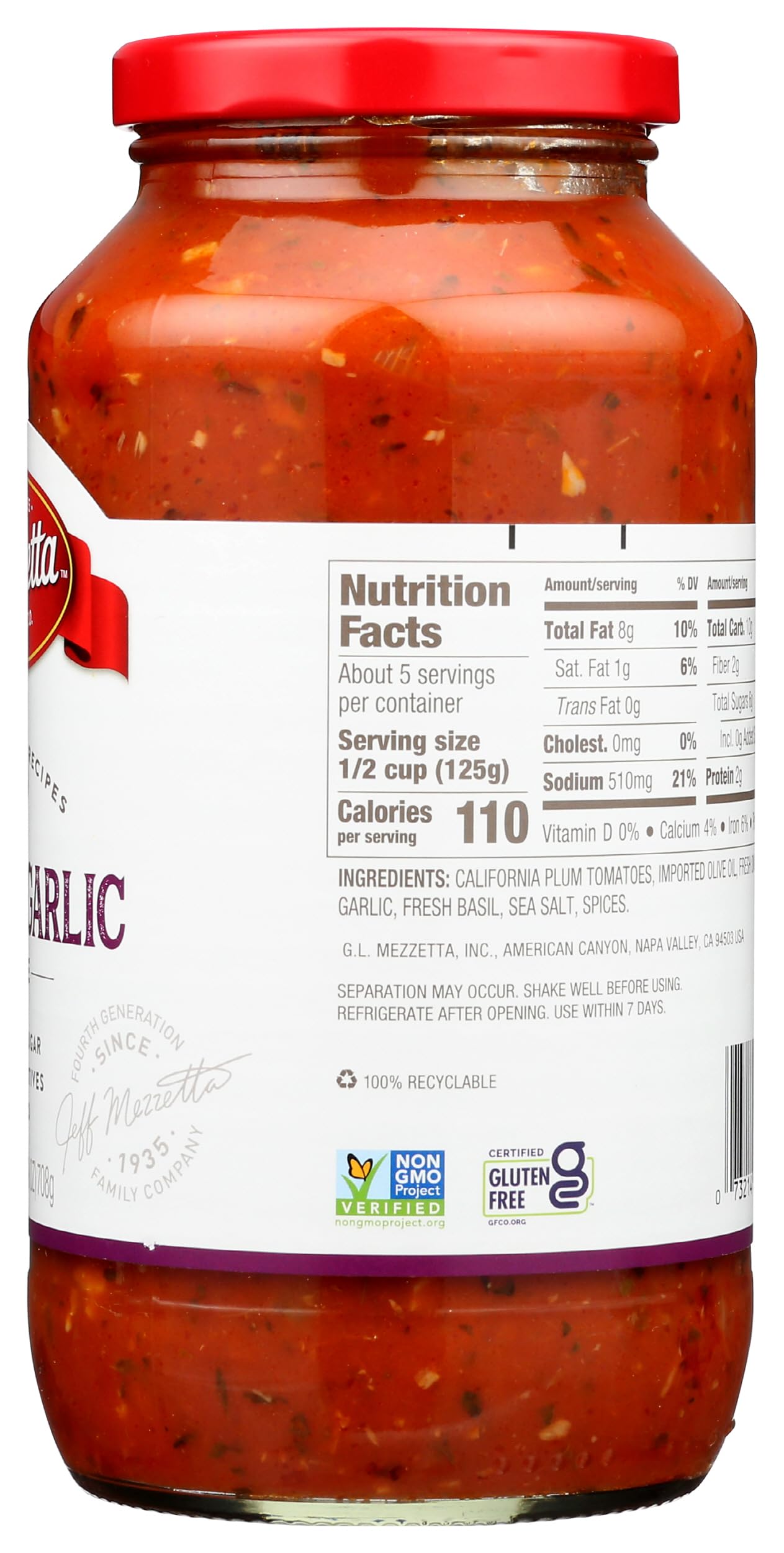 Mezzetta Crafts This Savory, Succulent Sauce Using Locally Grown, Vine-Ripened California Plum Tomatoes, Roasted Mellow Garlic, Caramelized Onions, Fresh Basil And Imported Olive Oil.