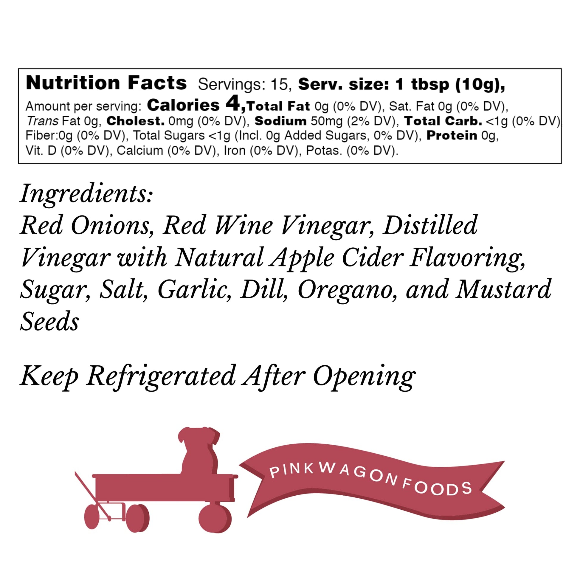- Q: Are Pickled Red Onions healthy and low in calories? A: Yes, Pickled Red Onions are a healthy choice, containing only 4 calories per serving and less than 1 gram of sugar. They can enhance your meals without significantly adding to your calorie intake.