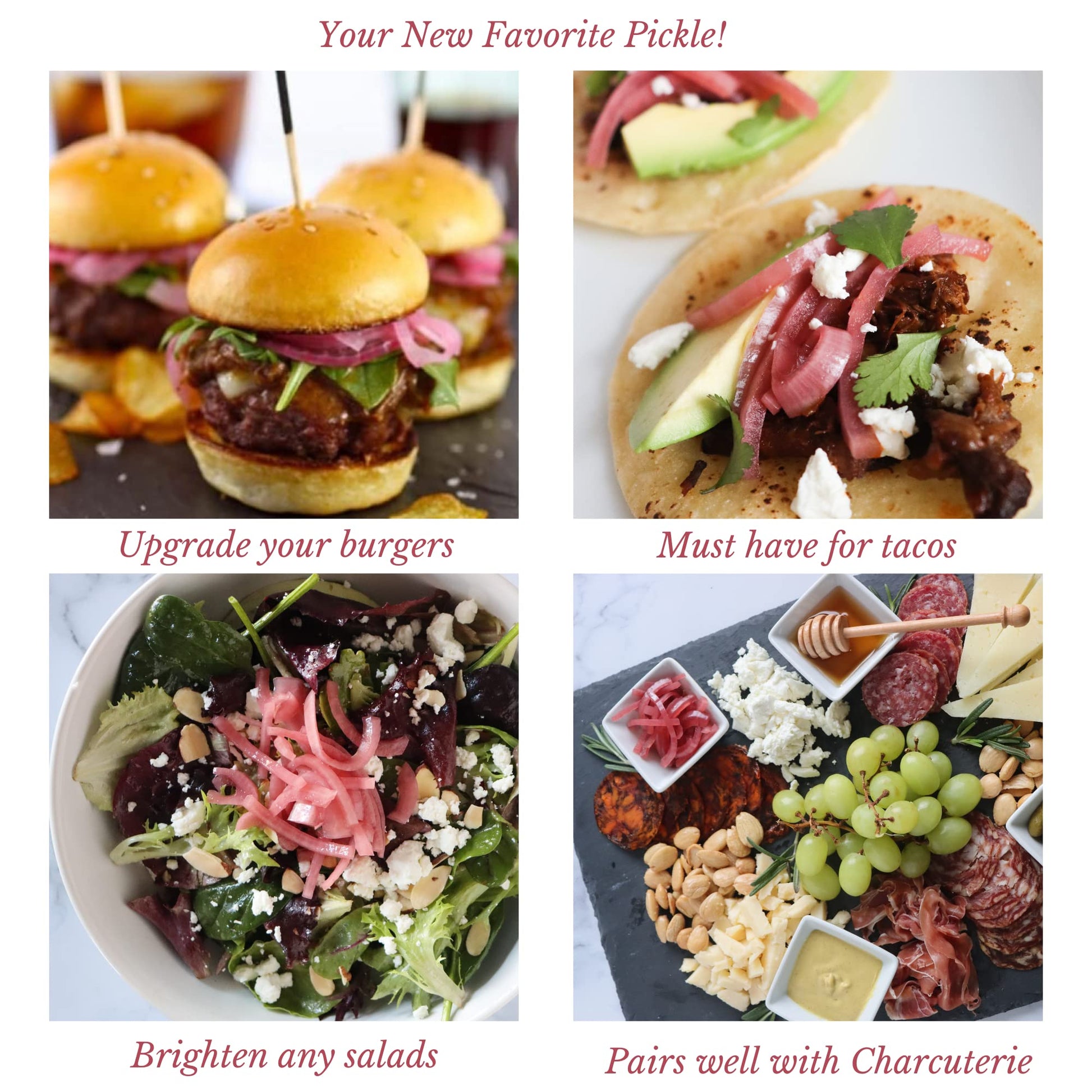 - Q: How can I use Pickled Red Onions in my meals? A: You can use Pickled Red Onions as a delicious topping for Salmon Lox spreads, mix them into hummus for a tangy twist, or add them to garden salads for an extra burst of flavor. They are versatile and complement a variety of dishes.