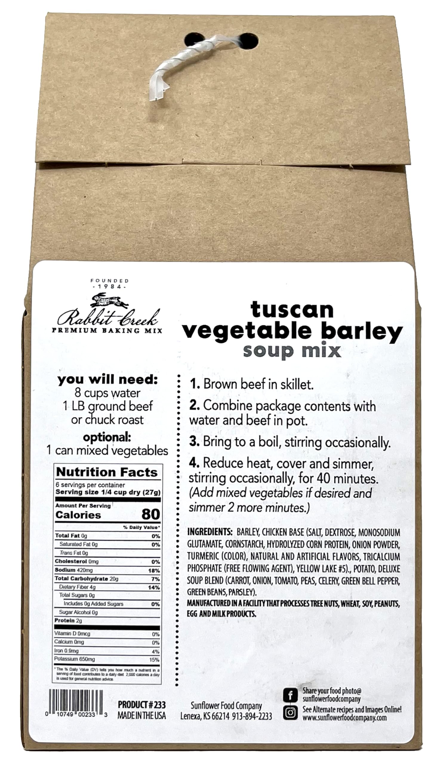 Rabbit Creek Hearty Soup Mix Tuscan Barley Soup Mix - Homemade Soup Mix With Chicken Base