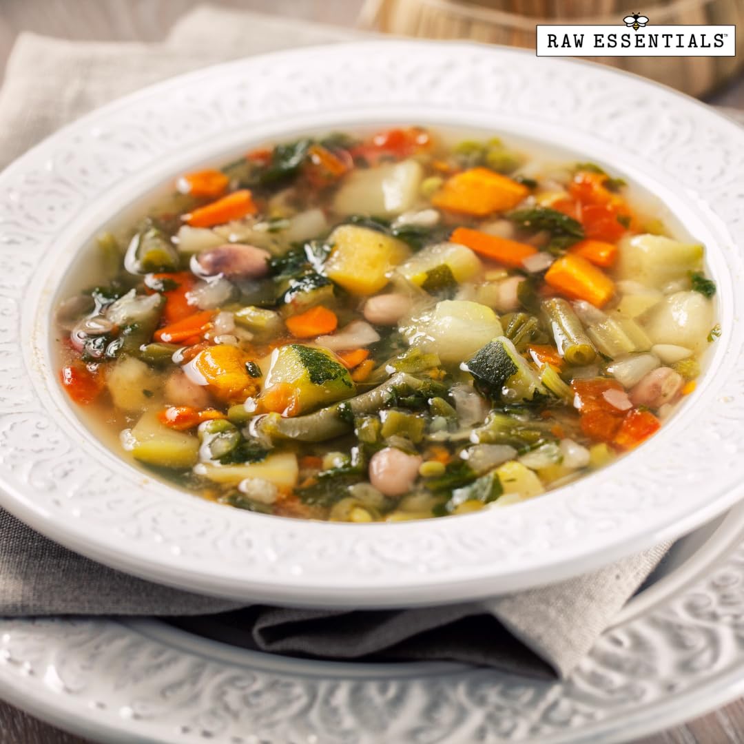 Q: Is the Raw Essentials Vegetable Soup Blend suitable for special diets?A: Yes, this blend is non-GMO, gluten-free, vegan, and paleo-friendly, making it suitable for a wide range of dietary preferences and restrictions.