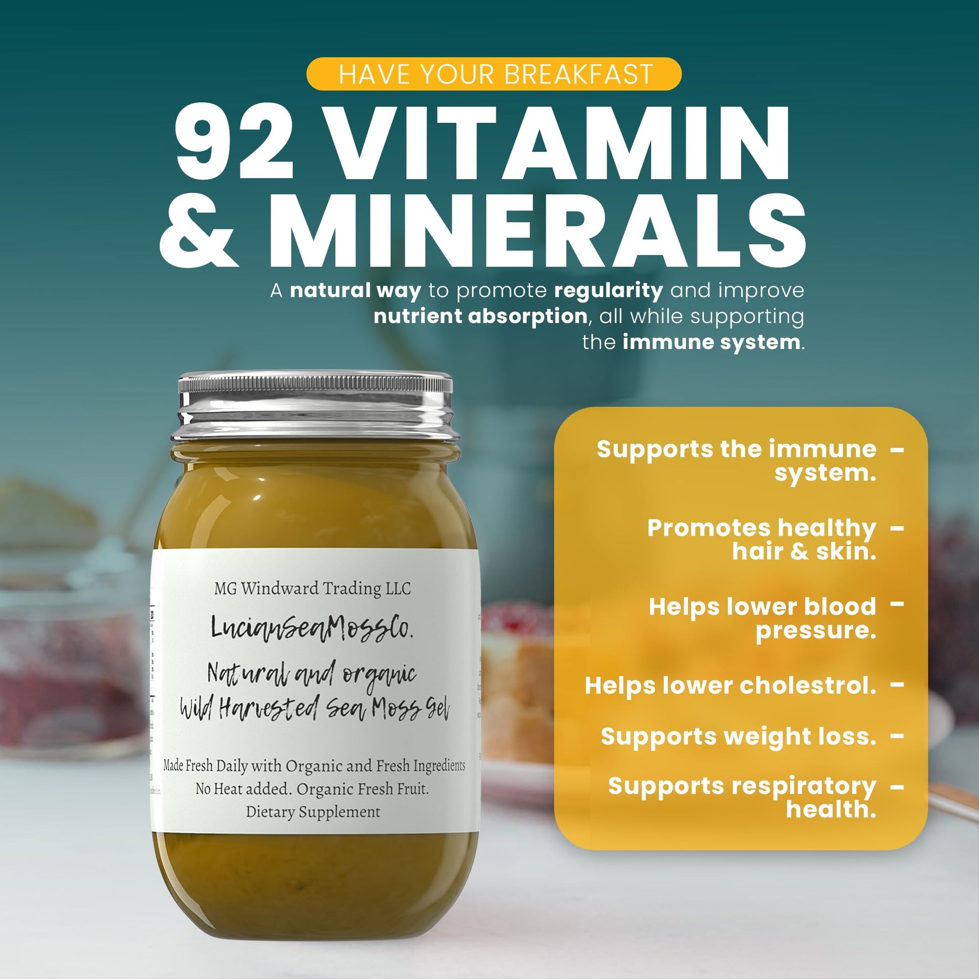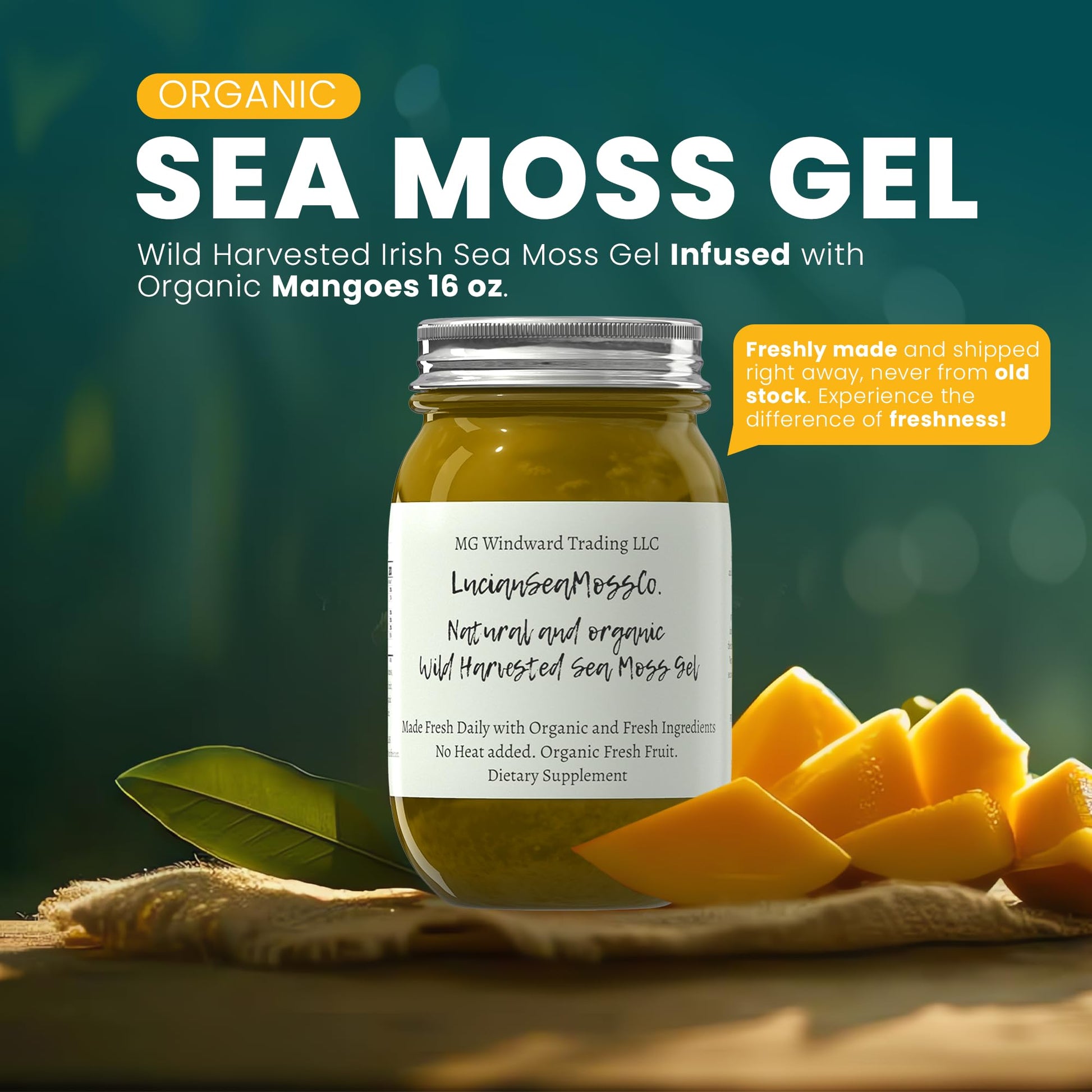 Our Sea Moss Gel is Made in the USA from organic, wild harvested sea moss, sustainably harvested from the St. Lucia ocean. Packed with essential vitamins and minerals like iodine, iron, and calcium, Irish sea moss promotes overall health and well-being. It is made the traditional way, without a bunch of fillers. It's thick and pure, not like most fake sea moss gels out there. We've won awards year over year for quality and purity! | With our organic sea moss gel, you can easily incorporate the benefits of sea moss into your daily routine. It can be added to smoothies, tea, desserts, or even used to thicken soups, and sauces. Enjoy the versatility of sea moss organic gel for a healthy lifestyle. | Our real sea moss has over 92 vitamins and minerals which aid in digestion and gut health. Organic sea moss gel is a natural way to promote regularity and improve nutrient absorption, all while supporting the immune system. | Irish sea moss gel promotes healthy skin, hair and nails. By using our seamoss gel regularly, you can nourish your skin from within, improving elasticity, reducing blemishes, and achieving a natural glow. Sea moss gel organic raw is great for the body, both inside and out. | Our organic sea moss gel is your all-in-one solution for comprehensive wellness support. Packed with essential minerals and vitamins, it may help with gym recovery, immune support, energy and performance, hair health, skin health, and alleviating joint pain. Incorporate it into your daily regimen for a holistic approach to health and vitality. | We make our sea moss gel the traditional way, no heat added which diminishes the minerals. We do not use any bioengineered ingredients, nor chemical additives or preservatives. This is authentic sea moss gel, not a tasty treat. Most companies use gelatin instead of pure sea moss and also use chemical preservatives to provide a lasting shelf life. They use wildcrafted sea moss which is grown in pools, or farmed. We do not. The texture of our sea moss gel is different because we use real certified wild harvested sea moss that produces different textures every time. It's not meant to be a tasty treat, it's meant to improve your overall health. | Our strawberry mango sea moss gel is made with fresh organic strawberries, fresh organic mangoes, organic agave nectar, spring water, and our certified wild harvested organic gold sea moss. | When you receive your gel it should be refrigerated to extend the shelf life to 30 days. Your gel is made fresh, not prevously frozen and will arrive at room temperature. An ice pack is included to prevent the gel from getting hot during transit. Our gel can sustain transit up to 14 days and will arrive fresh every time.