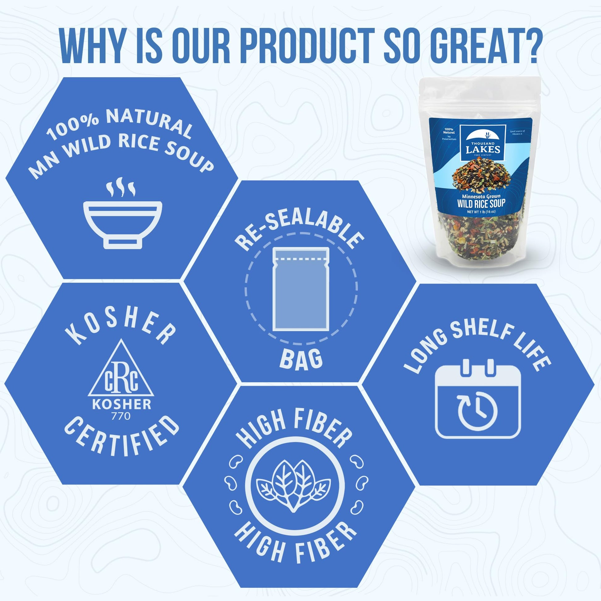 Q: Is this soup mix certified kosher?A: Yes, the Thousand Lakes Minnesota Wild Rice Soup Mix is certified kosher by Blue Ribbon Kosher, ensuring it meets the dietary requirements for kosher consumers.