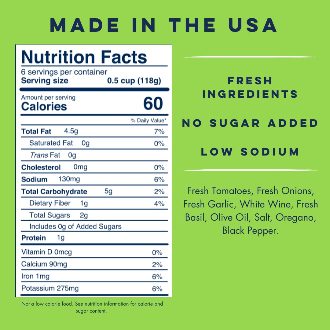 Yo Mamas Foods Proudly Presents The Finest Tomato Basil Sauce You'Ll Ever Taste. Our Award-Winning Tomato Basil Marinara Sauce Embodies The Same Authentic, Time-Honored Recipe That Grandma Used To Make 75 Years Ago. We'Ve Taken The Utmost Care To Create A Sauce That'S Nothing Short Of Exceptional. What Sets Our Tomato Basil Marinara Apart Is Our Commitment To Using Whole Fresh Tomatoes, A Stark Contrast To The Concentrates Used By Many Leading Brands. Additionally, We Rely On Only The Freshest Ingredients, Including Basil, Garlic, Oregano, Onions, And Pure Olive Oil. The Result Is A Gourmet Sauce That'S Unmatched In Freshness And Flavor. Our Premium Natural Tomato Sauce Is Both Indulgent And Healthy. Unlike Many Sauces Loaded With Sugars And Sodium, Our Entirely Plant-Based Sauce Contains Just 6 Total Carbs Per Serving And 160Mg Of Sodium. As A Result, It'S Suitable For Various Diets, Including Keto, Paleo, And Whole 30. This Versatile Sauce Is Suitable For A Wide Range Of Culinary Occasions. Whether You'Re Preparing Chicken, Pasta, Ziti, Vegetables, Lasagna, Or Pizza, Our Tomato Basil Marinara Allows You To Savor An Authentic Italian Experience In The Comfort Of Your Own Home. It'S A Guilt-Free Indulgence Made With The Freshest, Highest-Quality Ingredients.