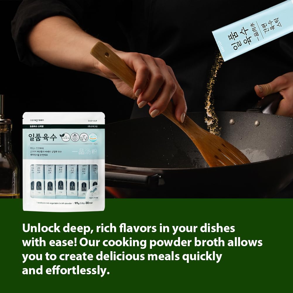 Crafted with a blend of 27 natural ingredients, including 20 vegetables and 6 seafoods, this broth powder is free from additives, sugar, and MSG. It ensures a wholesome taste without any fishy aftertaste, making it a healthy choice for your culinary needs. The convenient powder form allows for easy incorporation into your favorite recipes, whether youre preparing a hearty stew or a light salad. Its quick-dissolving properties in both hot and cold water add to its versatility, allowing for effortless use in any cooking scenario.