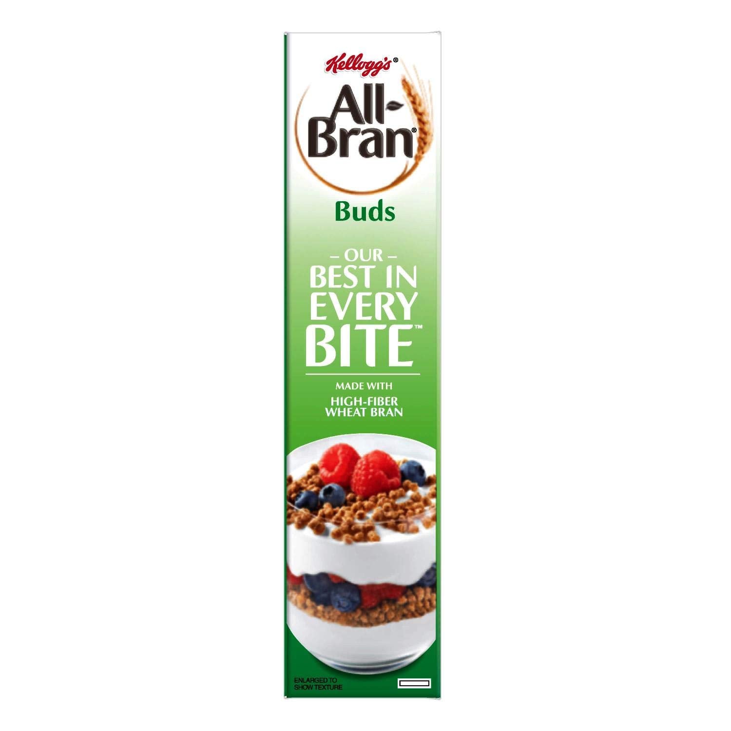 Q: What are the health benefits of consuming All-Bran Buds?A: All-Bran Buds are high in fiber, promoting digestive health, and they are low in fat. They also provide 100% of the daily value of folic acid, Vitamins B6, and B12, making it a nutritious addition to your breakfast.