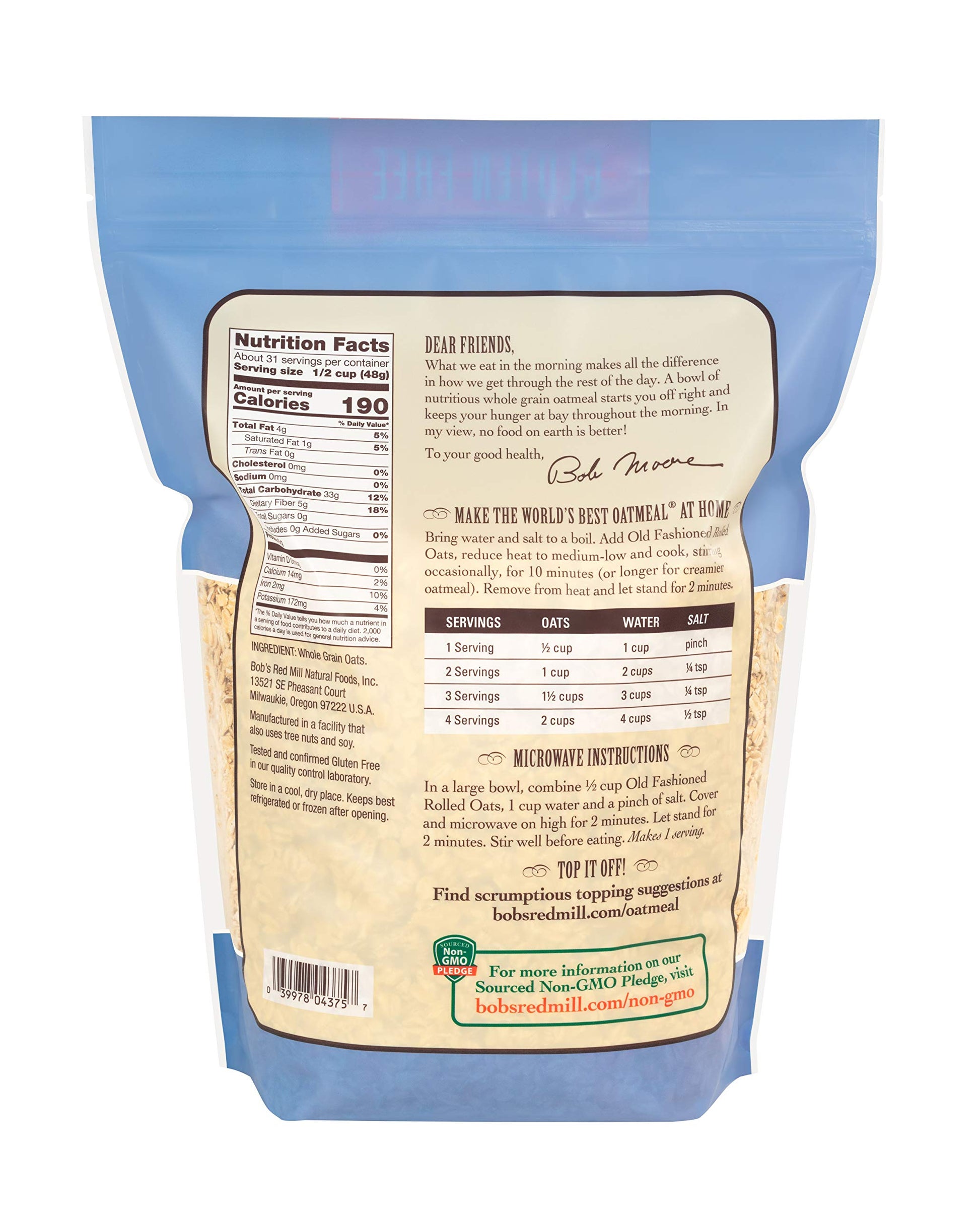- Q: What are the nutritional benefits of Bob's Red Mill Gluten Free Old Fashion Rolled Oats? A: Bob's Red Mill Gluten Free Old Fashion Rolled Oats are a nutritious choice, providing a good source of dietary fiber, protein, and essential minerals such as iron and magnesium. They can help support digestive health and provide sustained energy.