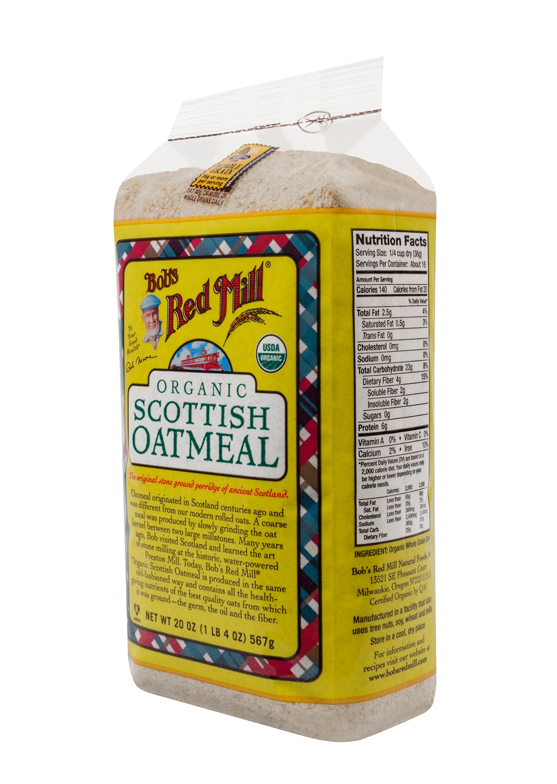 Oatmeal originated in Scotland centuries ago and was different from our modern rolled oats. A coarse meal was produced by slowly grinding the kernel between two large mill stones. Our Scottish Oatmeal is produced in the same old fashioned way and contains all the health giving nutrients of the best quality oats from which it was ground--the germ, the oil and the fiber. The result is a surprisingly unique and flavorful hot cereal.
