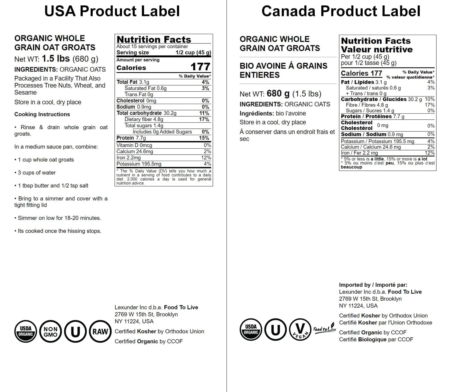 Q: Can I include Food to Live Organic Oat Groats in a vegan diet?A: Yes, Food to Live Organic Oat Groats are vegan-friendly, making them an ideal option for those following a plant-based diet. They are also Non-GMO and USDA Organic.