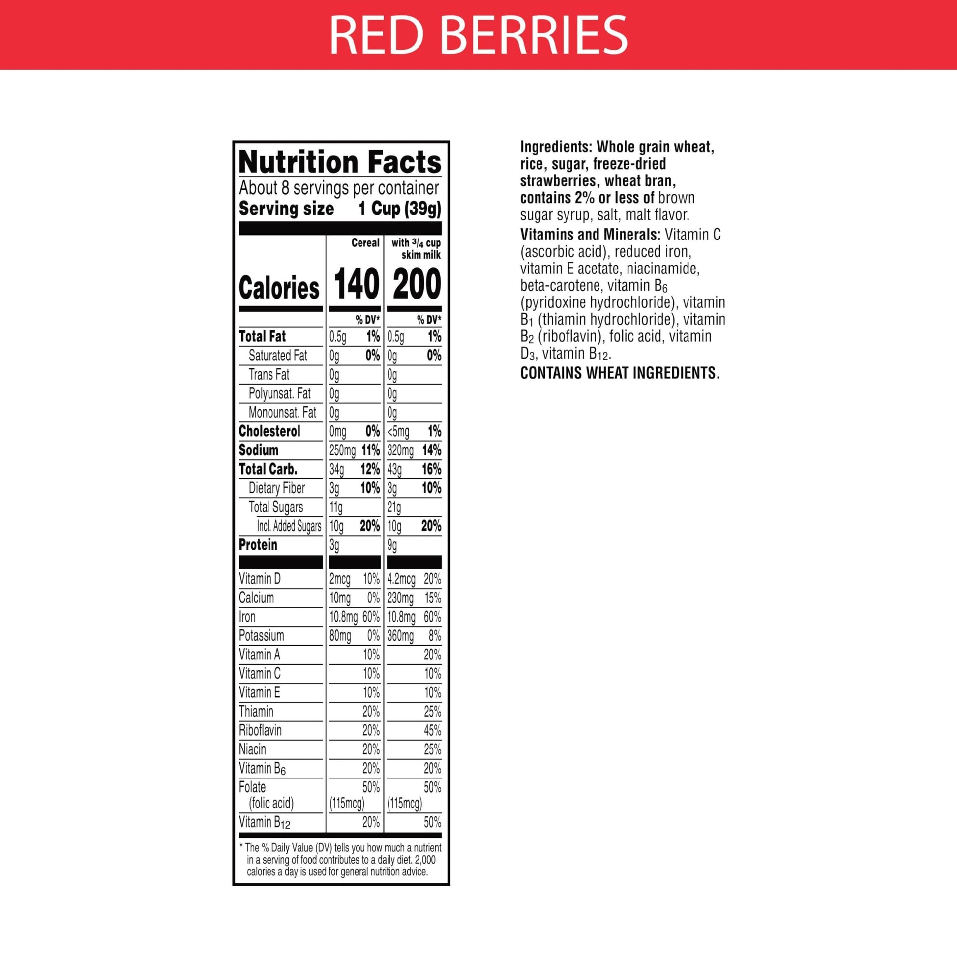 - Q: What are the key nutritional benefits of Kellogg’s Special K Cold Breakfast Cereal? A: Kellogg’s Special K Cold Breakfast Cereal provides 11 essential vitamins and minerals, including iron, vitamin D, and B vitamins, which support overall health and well-being. Additionally, it is made with real strawberries and red berries, offering a deliciously fruity flavor.