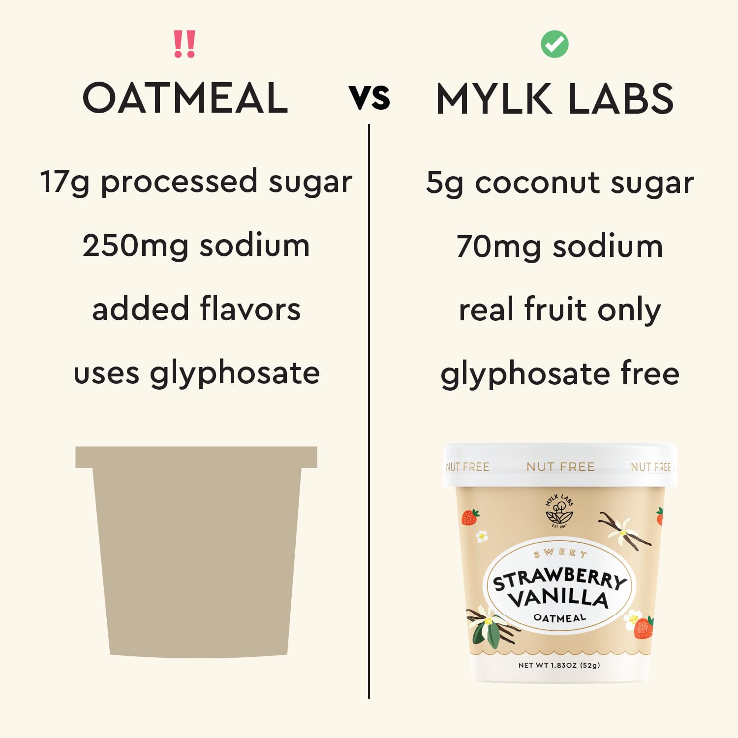 - Q: Are Mylk Labs oatmeal cups suitable for a gluten-free diet? A: Yes, Mylk Labs Maple Strawberry Protein Oatmeal Cups are gluten-free and made with gluten-free oats, making them a great option for individuals with gluten sensitivities or those following a gluten-free diet.