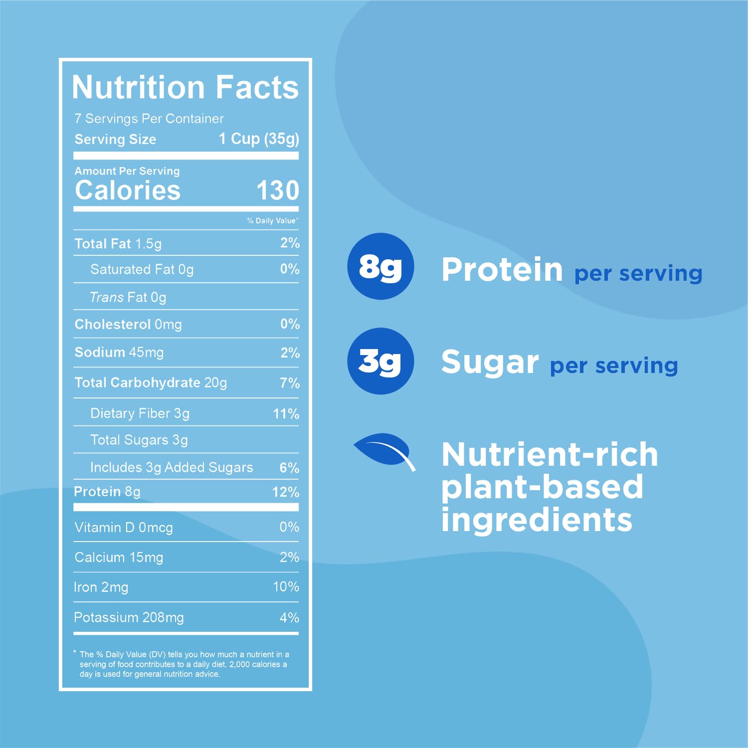 Q: How much protein does Three Wishes Frosted Cereal contain?A: Each serving of Three Wishes Frosted Cereal contains 8 grams of protein, making it an excellent breakfast or snack option for those looking to increase their protein intake without consuming animal products.