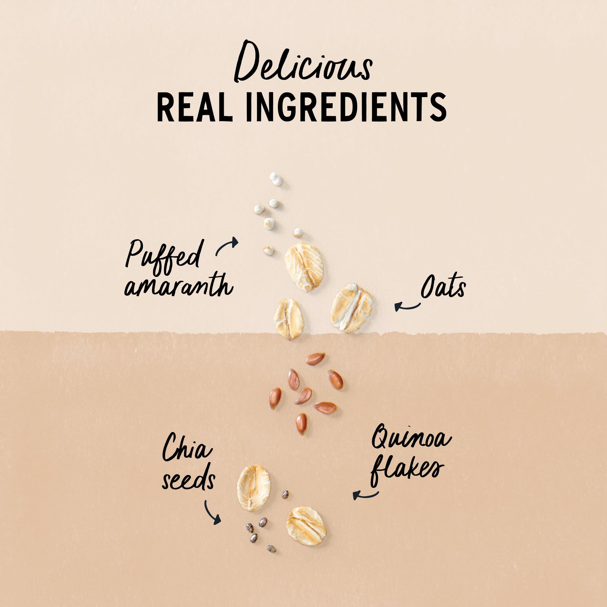 Made With Organic Gluten-Free Oats, Quinoa, Amaranth Flax, Hemp And Chia, Our Organic Original Is Infused With Superfoods For A Healthy Spin On A Breakfast Classic. With 7 Grams Of Protein, 5 Grams Of Fiber And 460 Mg Of Omega-3 Fatty Acids, Each Bite Packs A Powerful Punch And A Deliciously Satisfying Flavor. Ready In Just Two Minutes, Our Ancient Grain Oatmeal Is Perfect For The Active Health-Nut On-The-Go. Our Favorite Way To Enjoy It Is Soaked Overnight Or Topped With Fresh Fruit, Nut Butter, Maple Syrup Or A Sprinkle Of Our Ancient Grain Granola. Just As Happy On Your Baking Shelf, Our Ancient Grain Oatmeal Makes A Versatile And Delicious Baking Ingredient That Can Be Used In A Variety Of Recipes Including Cookies, Breads, Pancakes Or Crisps.