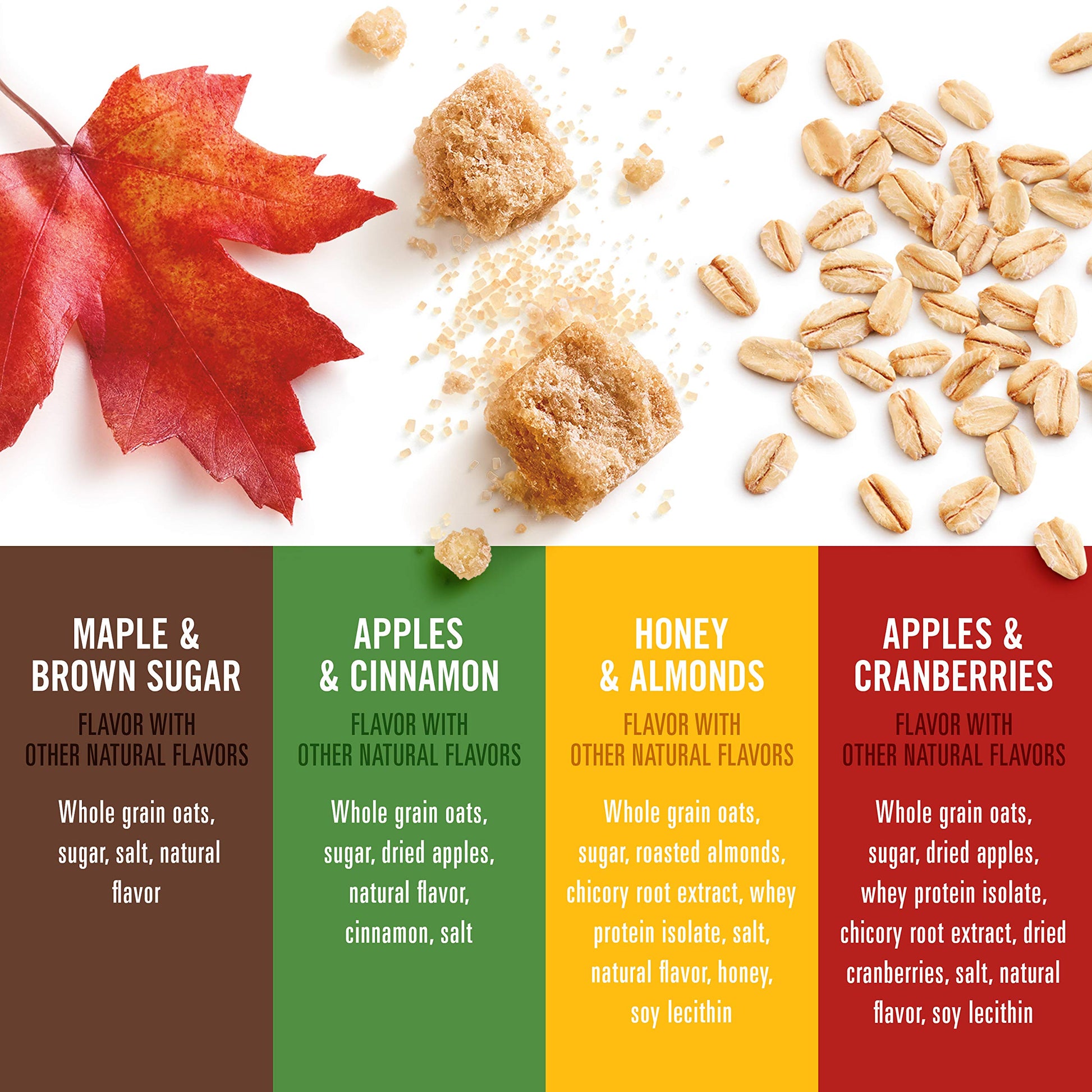 Q: What flavors are included in the Quaker Instant Oatmeal variety pack?A: The Quaker Instant Oatmeal Express Cups variety pack includes four delicious flavors: Maple & Brown Sugar, Apples & Cinnamon, Apples & Cranberries, and Honey & Almonds.