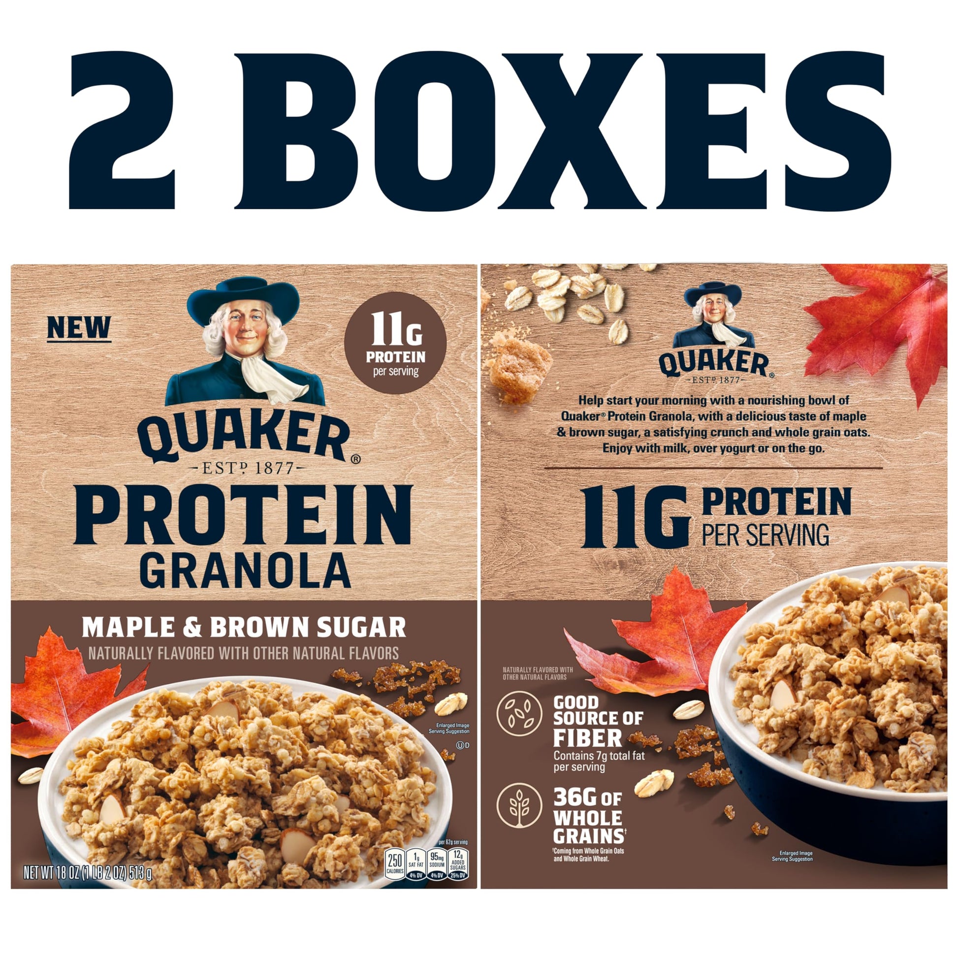 - Q: How can I enjoy Quaker Protein Granola? A: You can enjoy Quaker Protein Granola in several ways: with milk as a traditional cereal, over yogurt for added texture and flavor, or even on-the-go for a quick and satisfying snack. Its delicious maple brown sugar flavor adds a delightful taste to any meal.
