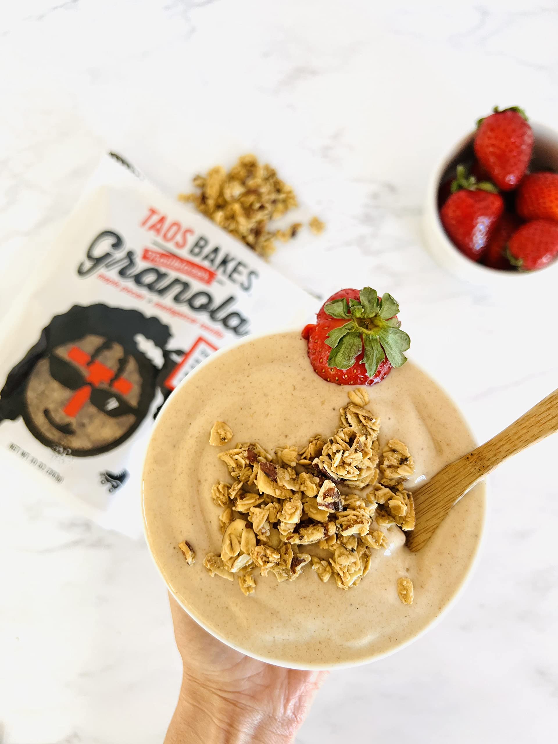 Q: How can I use Taos Bakes Granola in my meals?A: Taos Bakes Granola can be enjoyed in various ways, such as a topping for yogurt or cereal, mixed into an acai bowl, or eaten straight out of the bag as a healthy snack.