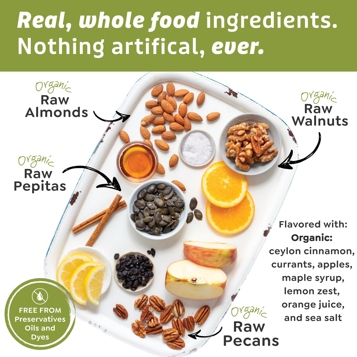 Q: What ingredients are used in Witzi's Grain Free Granola?A: Witzi's Grain Free Granola is made with a blend of real ingredients including almonds, walnuts, pecans, and flavored with apples and cinnamon. It contains no artificial additives, ensuring a healthy and delicious snack.