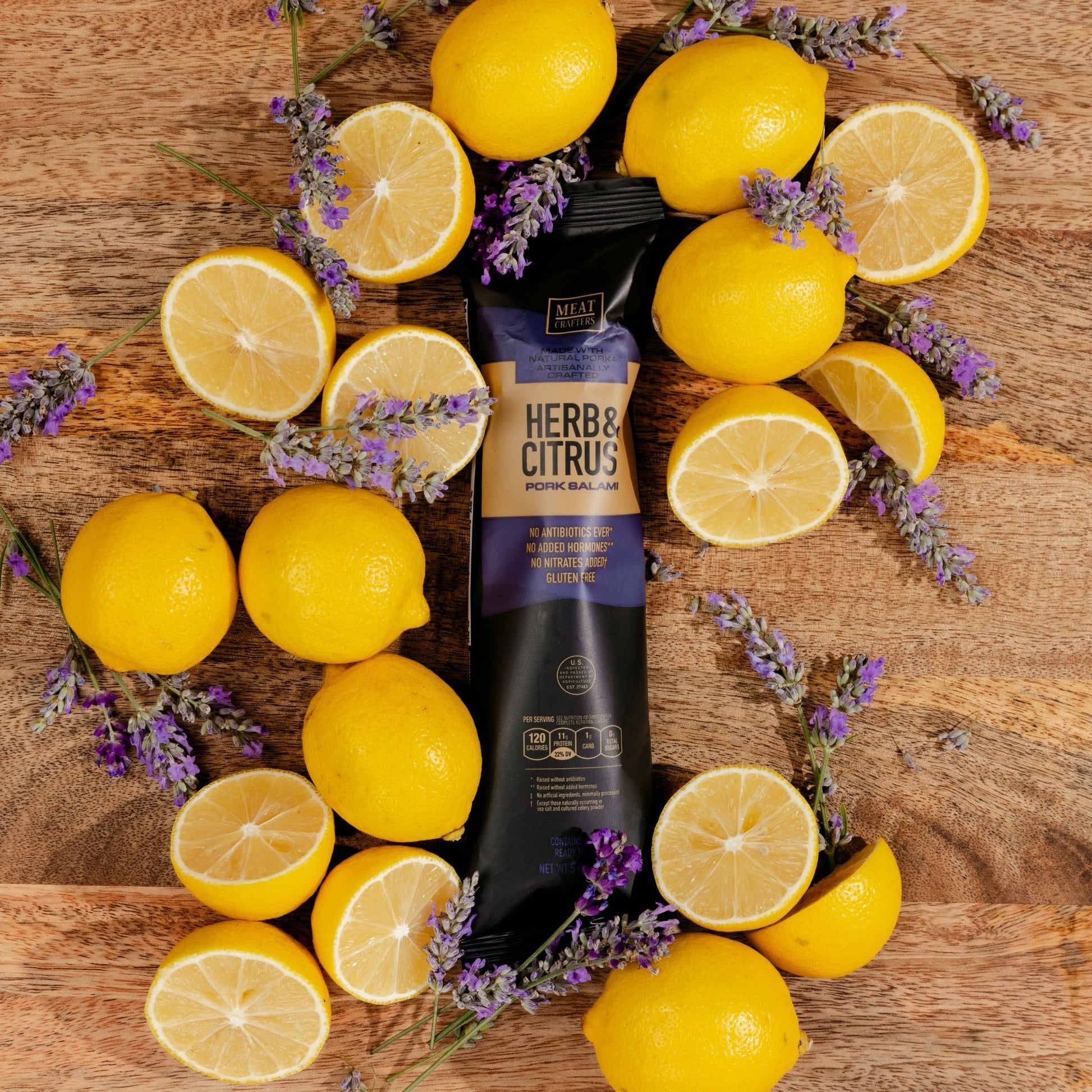 - Q: What ingredients are used in MeatCrafters Herb & Citrus Salami? A: MeatCrafters Herb & Citrus Salami is made from high-quality meats raised on an all-vegetarian diet. It features a blend of long pepper, lemon zest, mace, and lavender, with no added nitrites or nitrates.