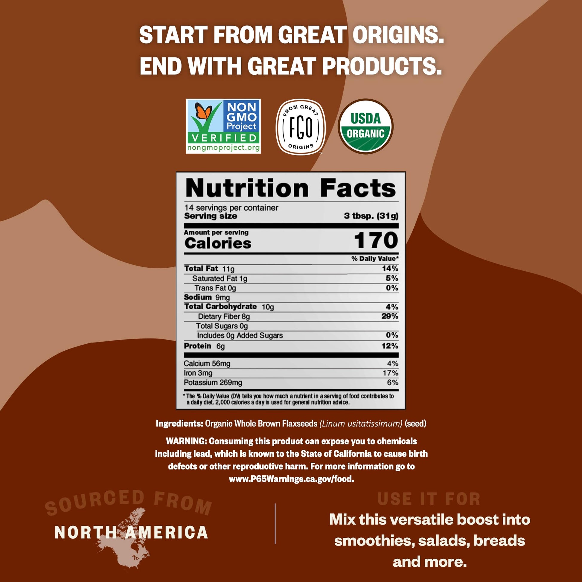 - Q: How can I incorporate flax seeds into my diet? A: You can add organic whole brown flax seeds to smoothies, oatmeal, yogurt, baked goods, or sprinkle them on salads for an added nutritional boost.