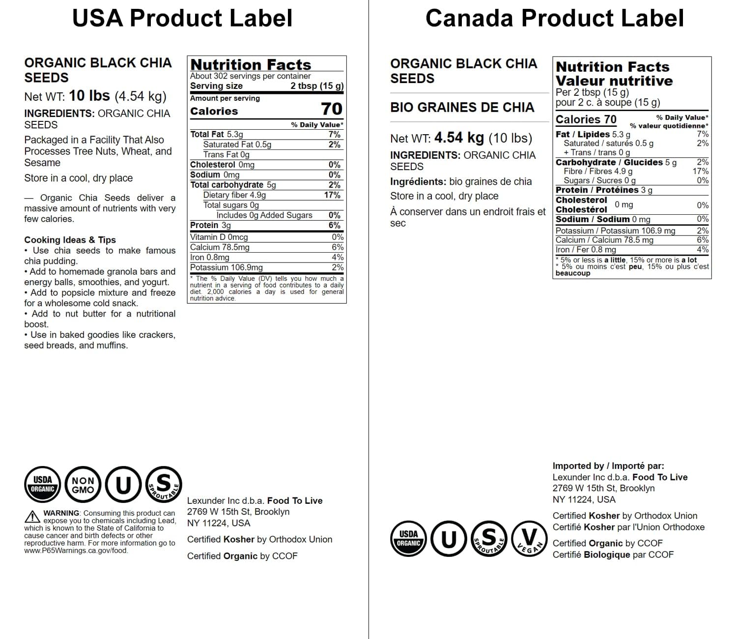View compareFood to Live - Organic Black Chia Seeds, 10 Pounds Non-GMO, Whole, Sproutable, Vegan, Kosher, Keto, Sirtfood, Bulk. Rich in Esse