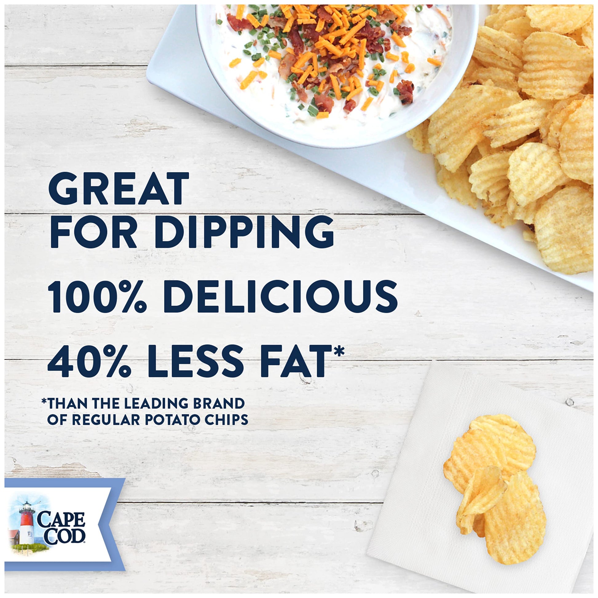 Q: Are Cape Cod Potato Chips suitable for dipping?A: Yes, the uniquely ridged shape of Cape Cod Potato Chips is designed to hold up well to dips, making them a perfect choice for serving with your favorite salsas, guacamole, or cheese spreads.
