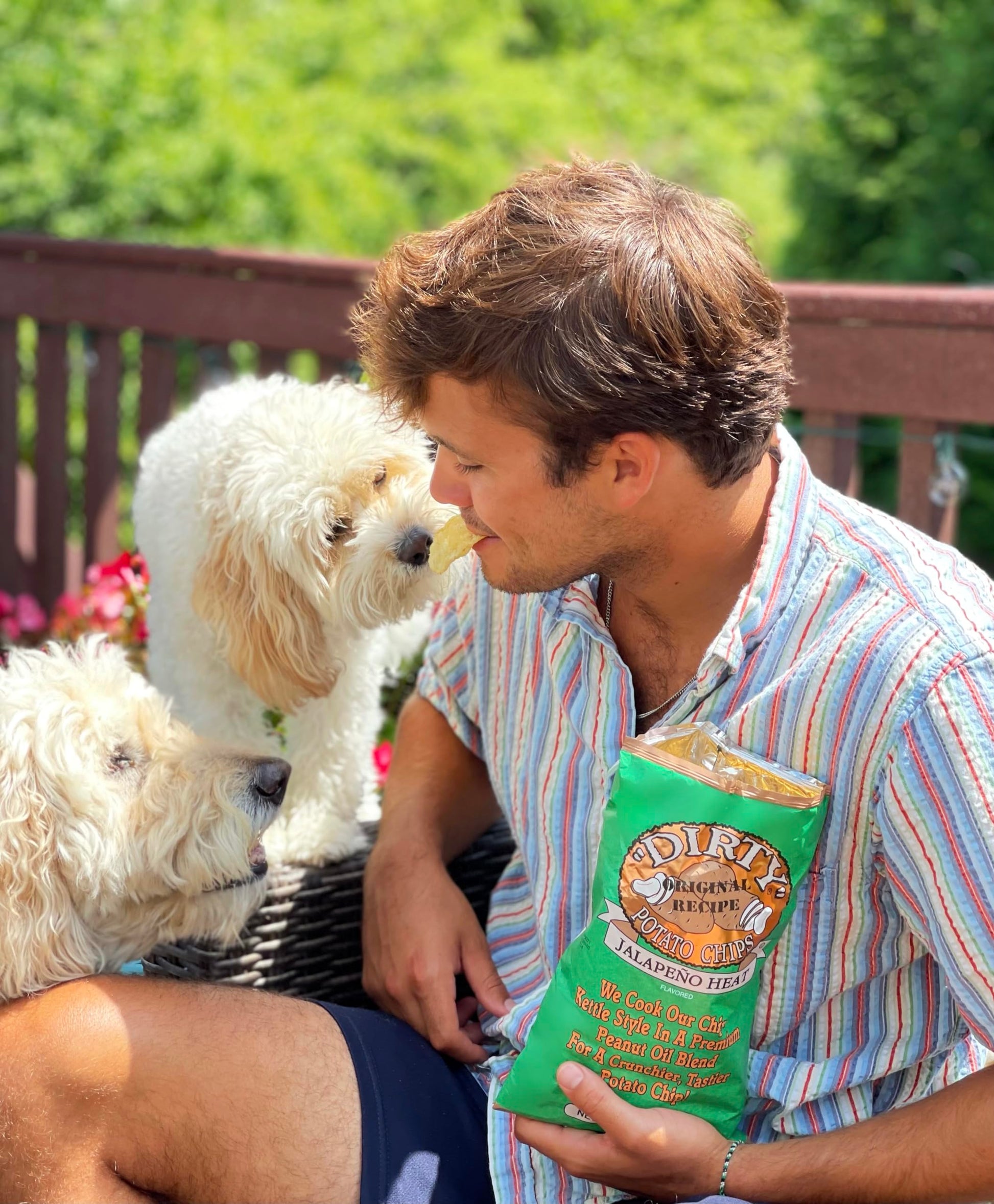• Q: What makes Dirty Chips Jalapeno Heat unique compared to other potato chips? A: Dirty Chips Jalapeno Heat are kettle cooked with the skins on, providing a unique texture and a bold flavor profile that includes jalapeno pepper, onion, garlic, and paprika. This combination results in a crunchy chip with a tantalizing spicy kick, setting them apart from regular potato chips.