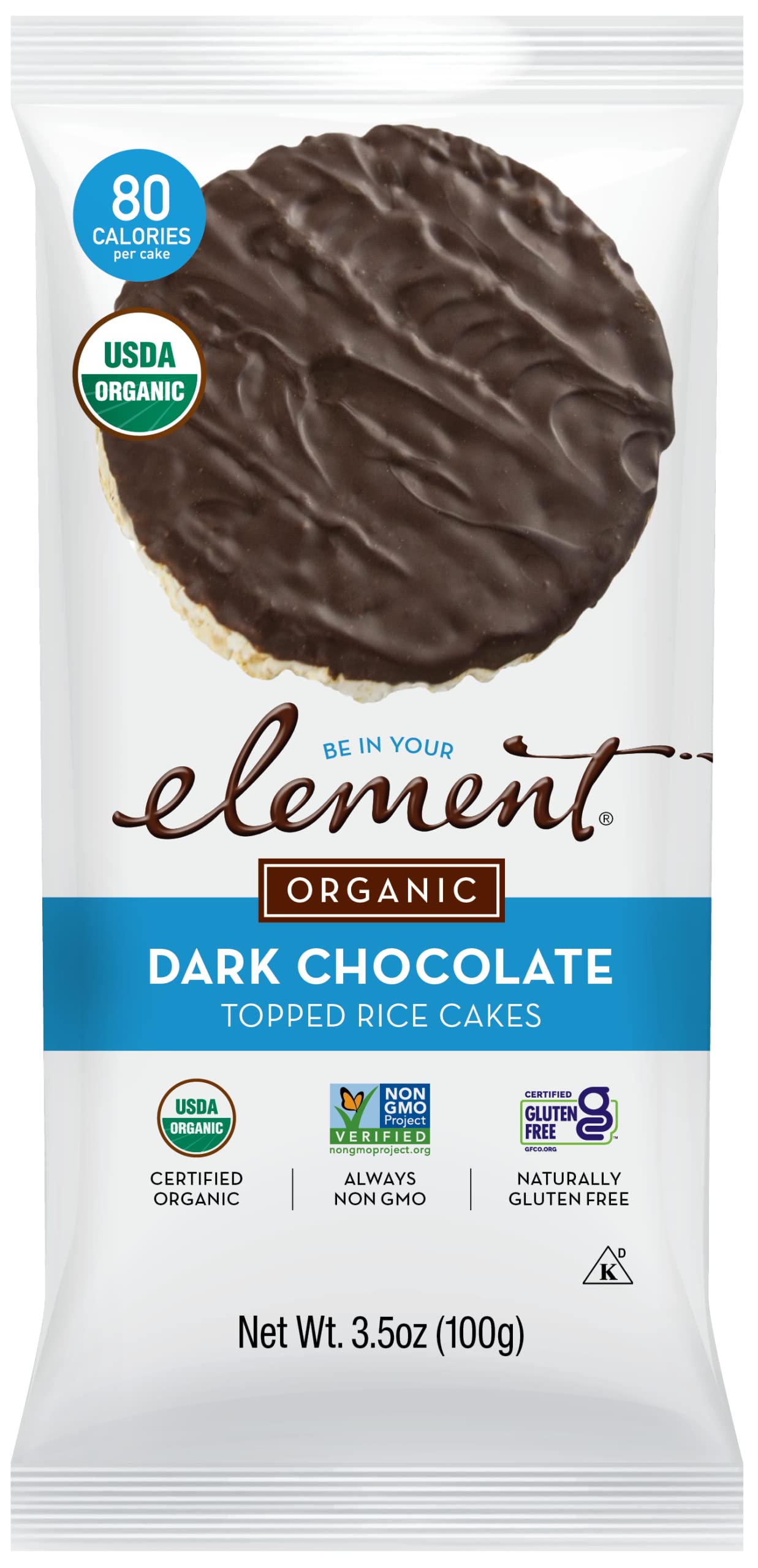 Q: What flavors are available for Element Snacks rice cakes?A: Element Snacks offers a variety of flavors including Dark Chocolate, Milk Chocolate, Peanut Butter, White Chocolate Strawberry, and White Chocolate Orange, catering to different taste preferences.