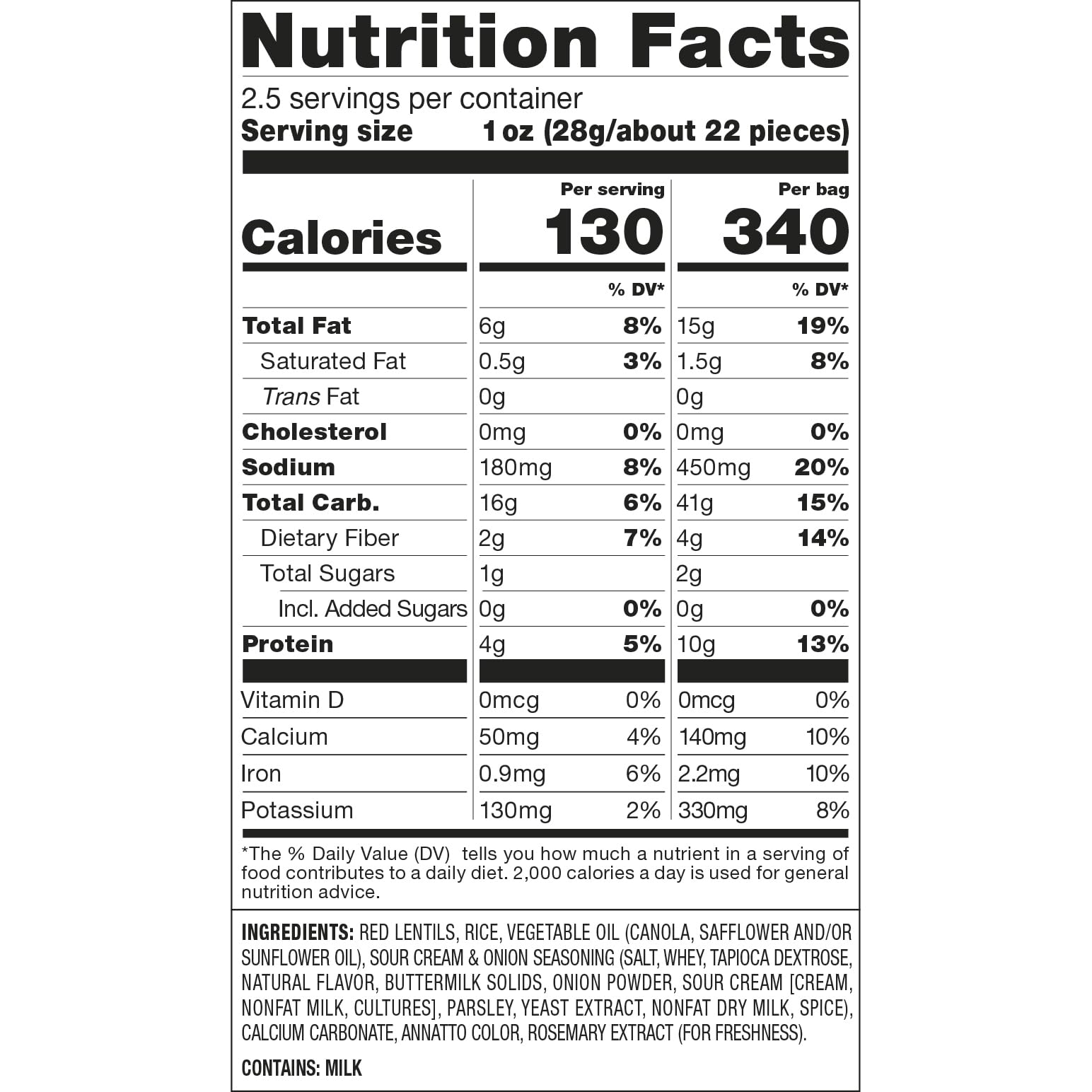 Q: What is the flavor of Harvest Snaps Veggie Chips?A: Harvest Snaps Veggie Chips come in a delicious Sour Cream and Onion flavor, offering a savory and satisfying snack experience.