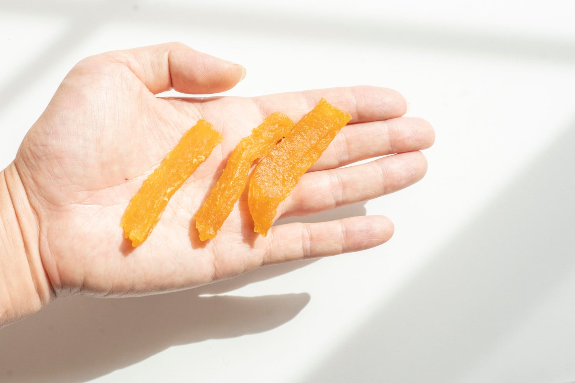 Q: Can I use these sweet potato snacks in recipes or as toppings?A: Absolutely! KOKO FARM Semi-Dried Sweet Potato Snacks can be enjoyed on their own or used as a tasty topping for salads, yogurt, or oatmeal, adding a natural sweetness and chewy texture.