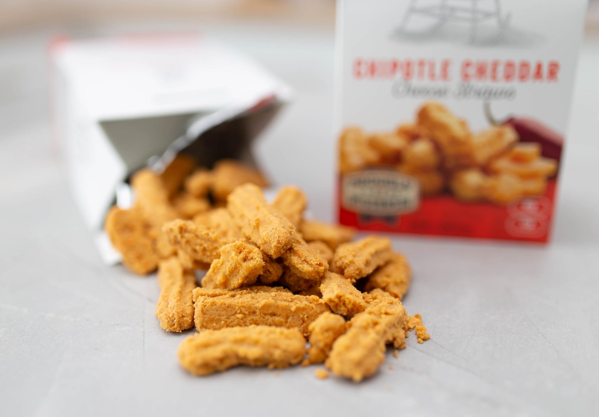 Q: What makes Mama Geraldine's Chipotle Cheese Straws a healthier snack option?A: These cheese straws are baked to golden perfection instead of being fried, which means you can enjoy a satisfying crunch without the added guilt of traditional fried snacks.