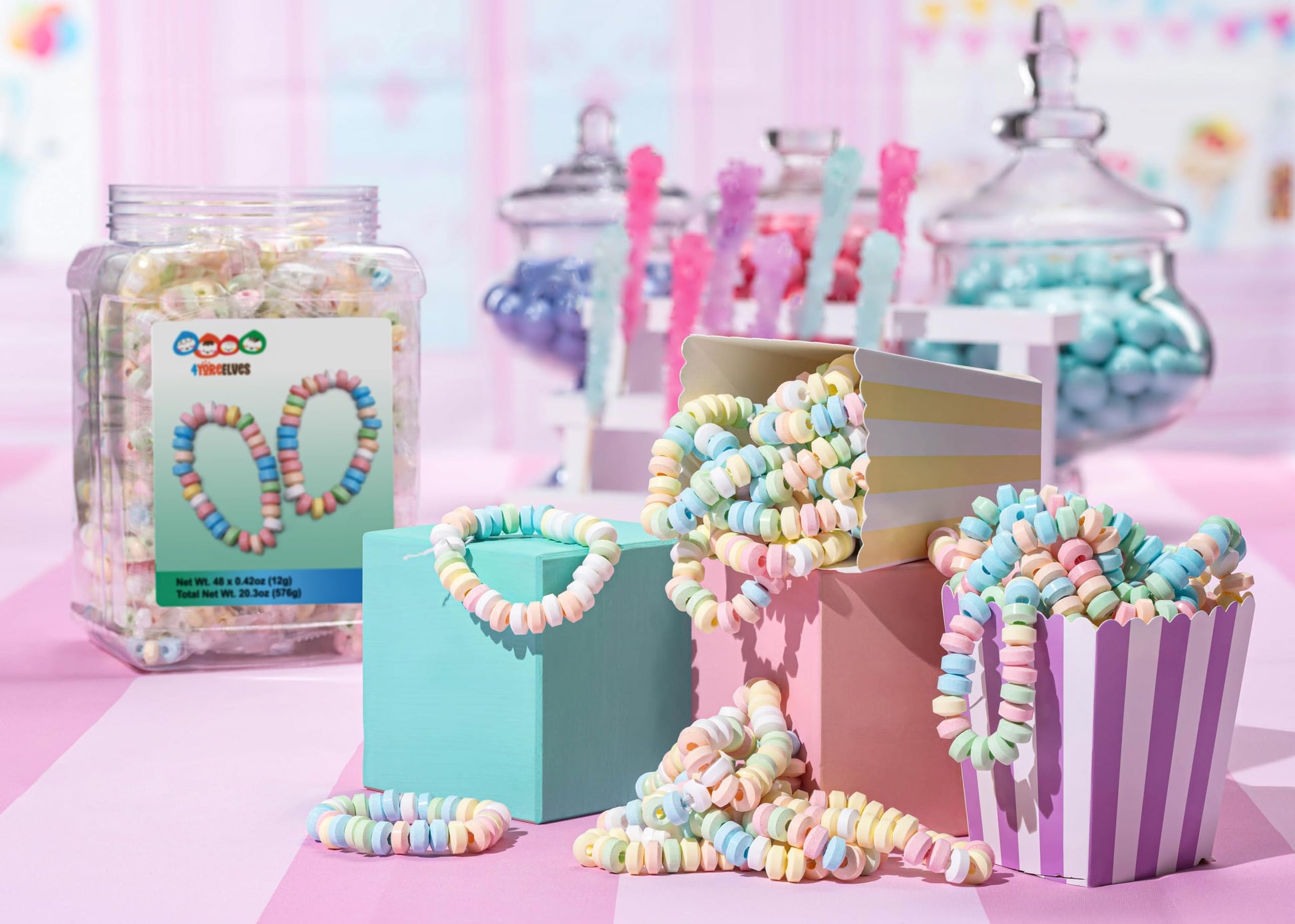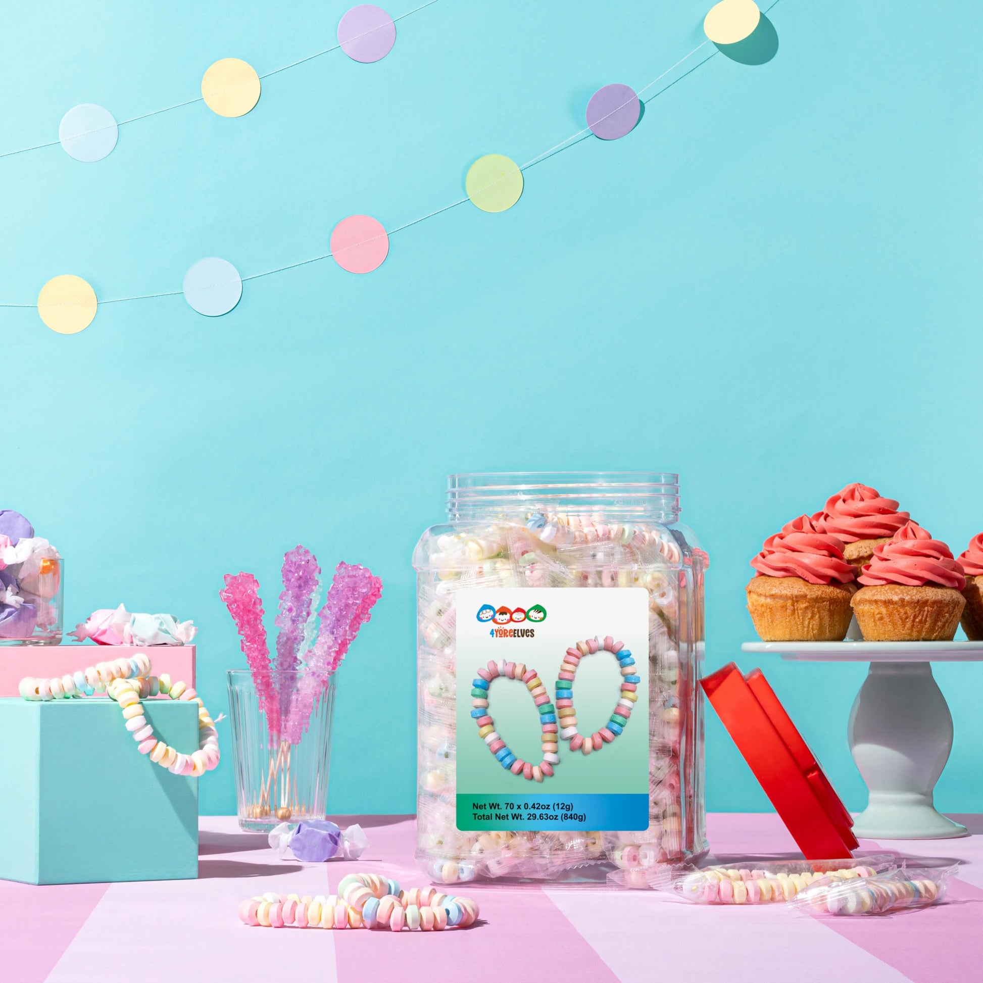 70 Candy Bracelets Individually Wrapped, Stretchable Vintage Candy Jewelry For Kids, The Perfect Pastel Addition To Your Candy Buffet, Princess-Themed Party Or Goody Bags, By 4Yoreelves, Pack Of 70 X 0.42Oz