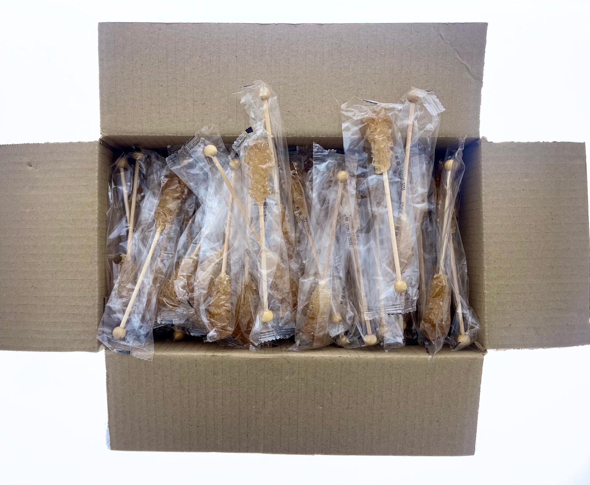 Candy Envy - Amber Caf Sugar Sticks Mini Rock Candy - 100 Bulk Individually Wrapped Amber Treats - Original Sugar Flavored