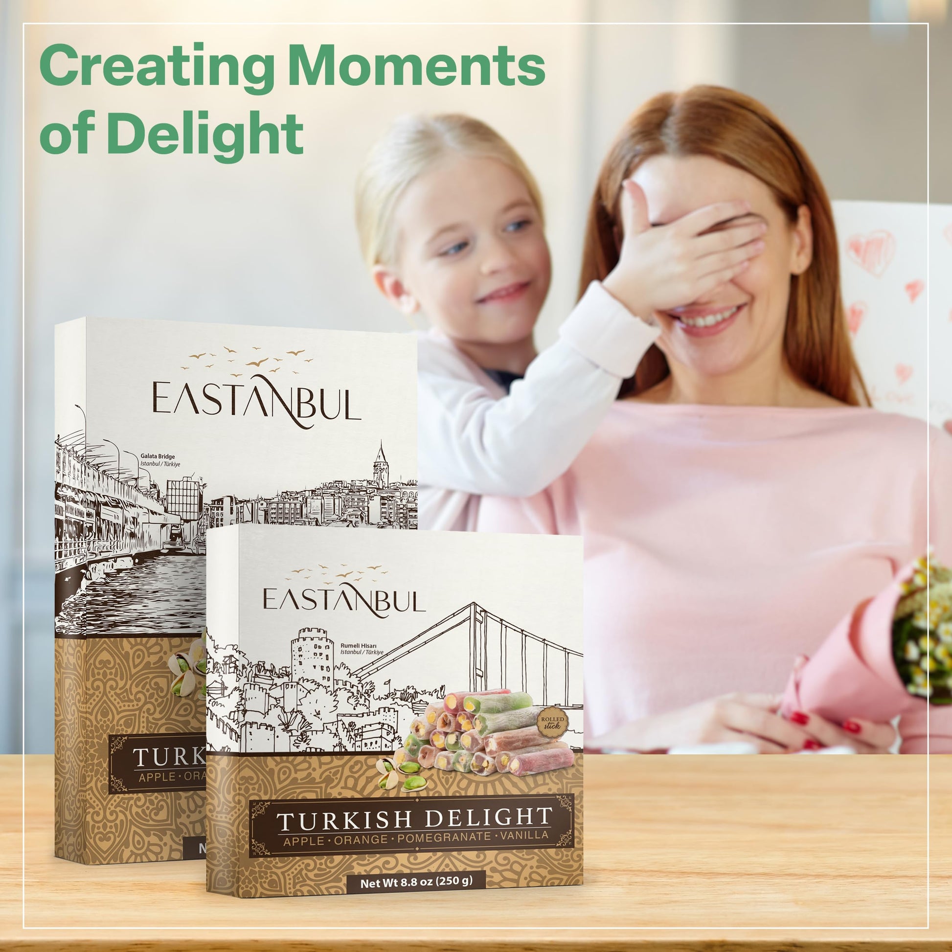 Q: Is the Eastanbul Turkish Delight suitable for vegans?A: Yes, the Eastanbul Turkish Delight is vegan-friendly, made with natural ingredients and without any animal products.