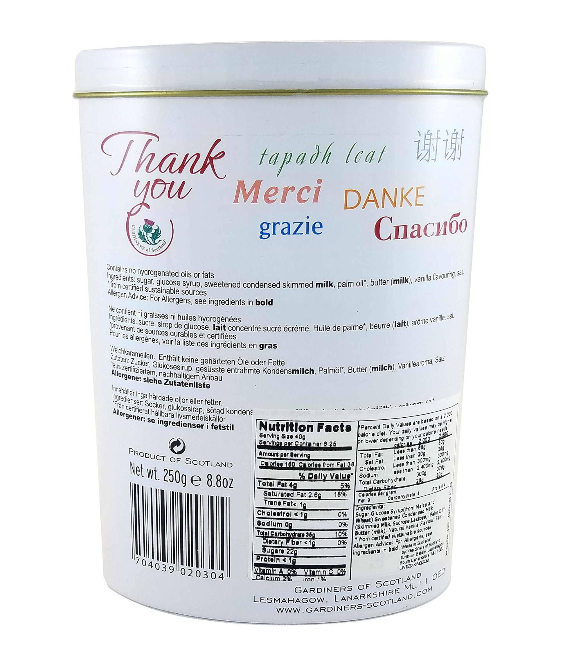Gardiners of Scotland Handmade Fudge 250g Tin, Thank You Languages Vanilla Fudge