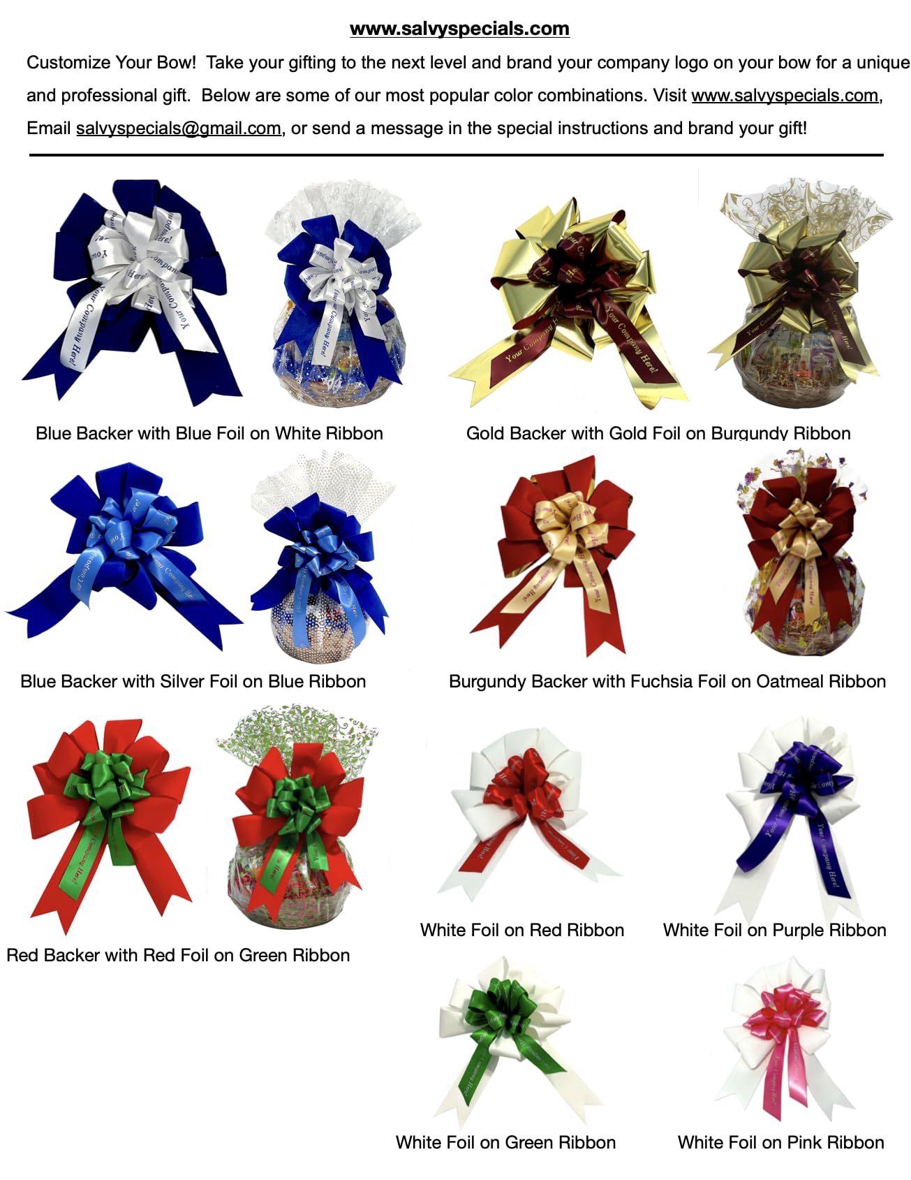 Q: Can I personalize my chocolate gift basket?A: Yes, you can personalize your chocolate gift basket! You have the option to add a custom card at checkout or customize the bow to reflect your personal touch.