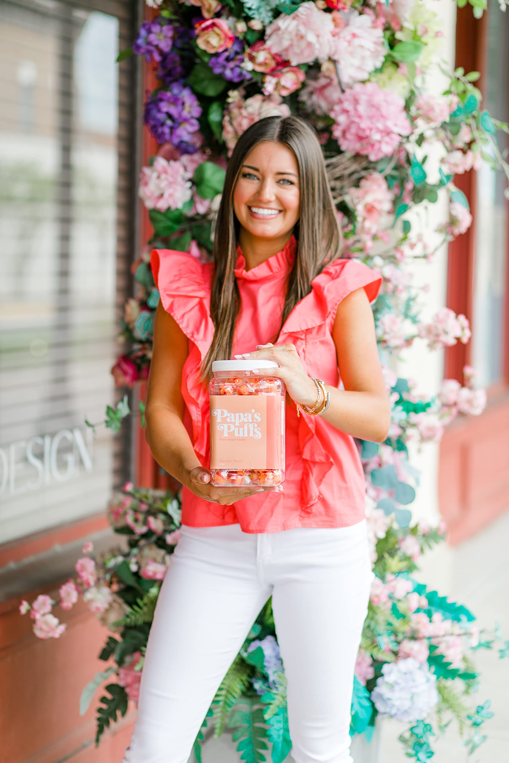 Q: Where are Papa's Puffs manufactured?A: Papa's Puffs Georgia Peach Flavored Pure Sugar Candy is proudly manufactured in the USA, ensuring quality and taste.