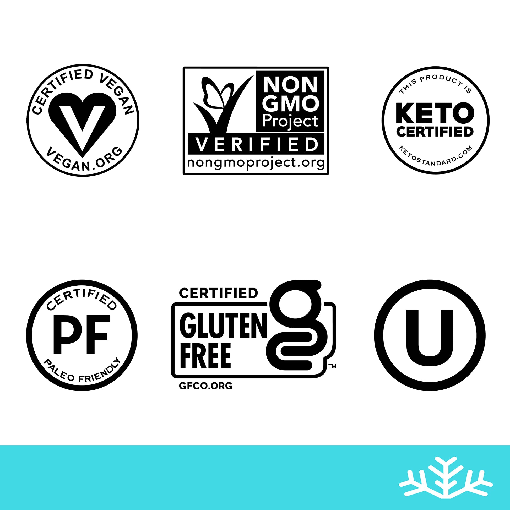 Q: What certifications do these xylitol candy chips have?A: The Peppermint KETO Xylitol Candy Chips are certified Non-GMO, Vegan, Keto, OU Kosher, Gluten-free, and Paleo-friendly, ensuring they meet high standards for quality and dietary preferences.