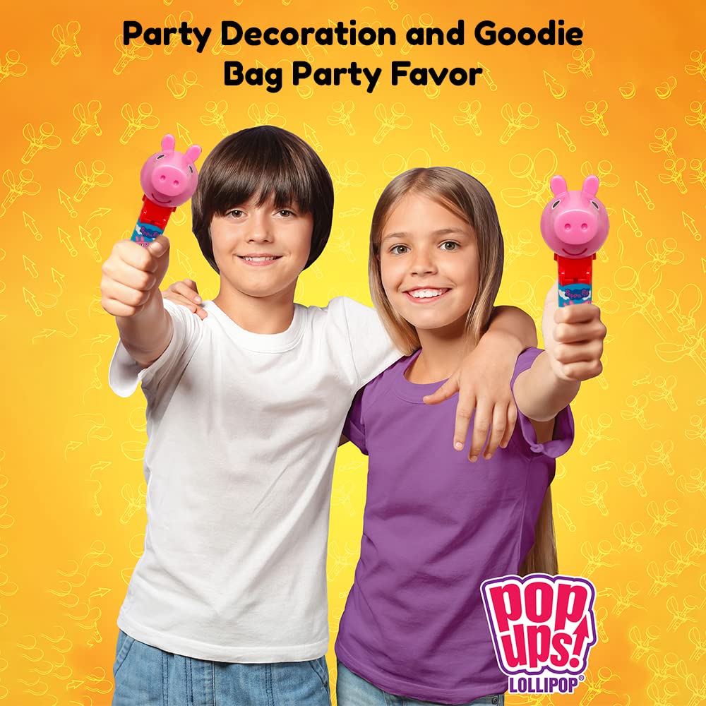 Q: What age group is suitable for the Pop Ups! Peppa Pig Lollipop Holder?A: The Pop Ups! Peppa Pig Lollipop Holder is designed for children aged 4 and older, making it a perfect candy favor for birthday parties or Halloween celebrations.