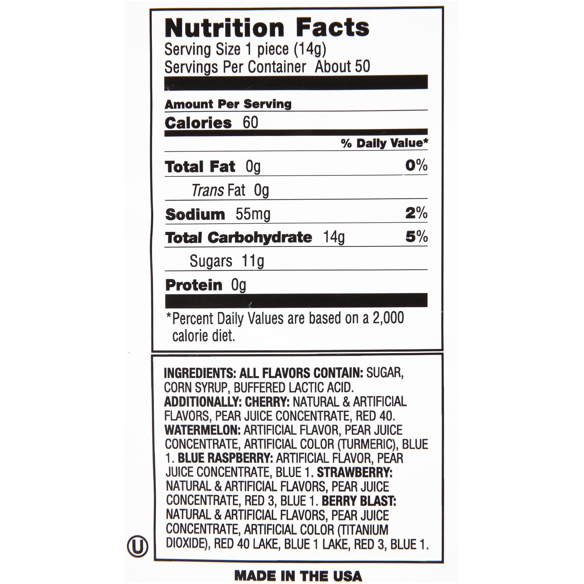 Q: What flavors are included in the Ring Pop variety pack?A: The Ring Pop variety pack includes six mouth-watering flavors: Strawberry, Blue Raspberry, Watermelon, Sour Cherry, Berry Blast, and Very Berry Punch, ensuring there's a favorite for everyone.