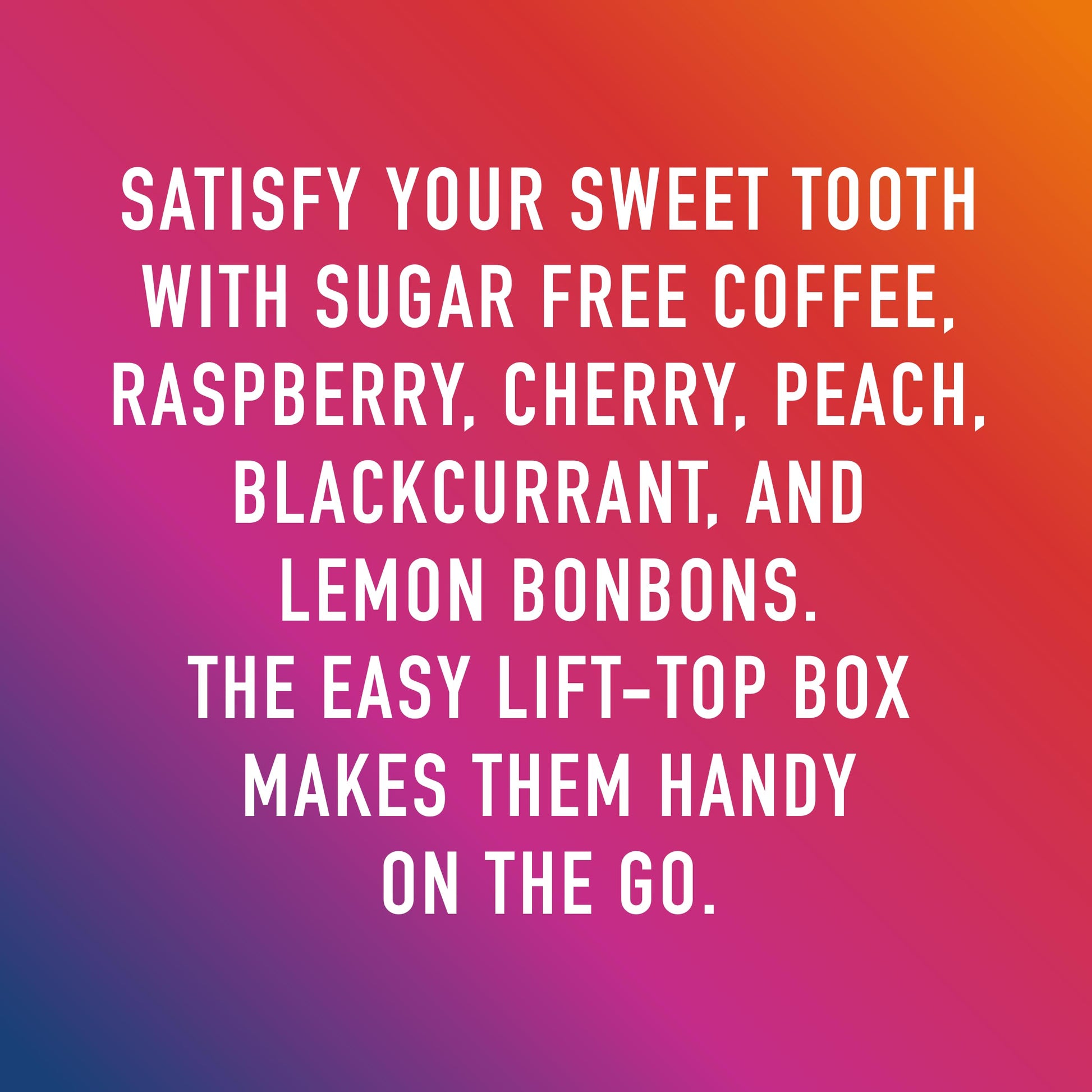 Just Because Youre Watching Sugar Intake Doesnt Mean You Cant Enjoy Some Sweetness. Swiss Imports Sugar Free Bonbons Offer Just That In A Hard Candy Form. They Come In A Convenient Lift-Top Box That Keeps Candies Contained And Fresh-Tasting, Making It Easy To Indulge On The Go. Taste One And Enjoy The Sweet Sugar-Free Freedom. At Swiss Imports, We Craft Sugar-Free Pastilles And Other Classic Candies That Are Beloved The World Over. Made Exclusively In Europe With The Utmost Quality Ingredients, Our Premium Bonbons Have Luscious Flavor, Without The Aftertaste Of Many Sugar-Free Candies. So Whether Youre A Coffee Fanatic, A Berry Lover, A Citrus Fancier, Or Are Crazy For Peaches, We Have A Way To Satisfy Your Sweet Tooth. *Kosher Certified By Rabbi Jehoseph Ralbag 5/1/23 **See Full Ingredients List