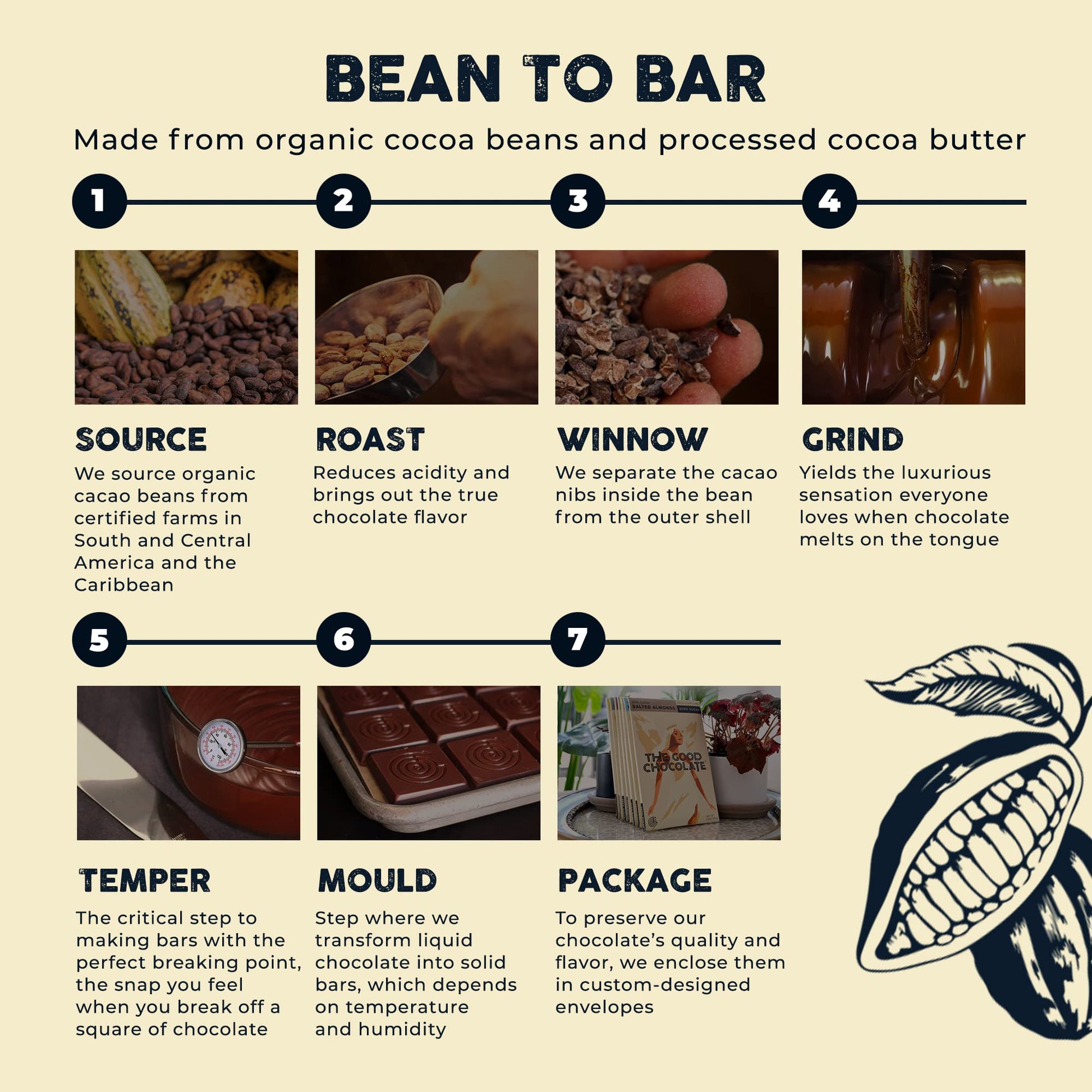 - Q: Are The Good Chocolate bars vegan and free from allergens? A: Yes, The Good Chocolate bars are 100% vegan (with the exception of the Milk Chocolate Style) and are crafted without soy lecithin. They are a great option for those looking for allergen-friendly snacks that align with various dietary preferences.